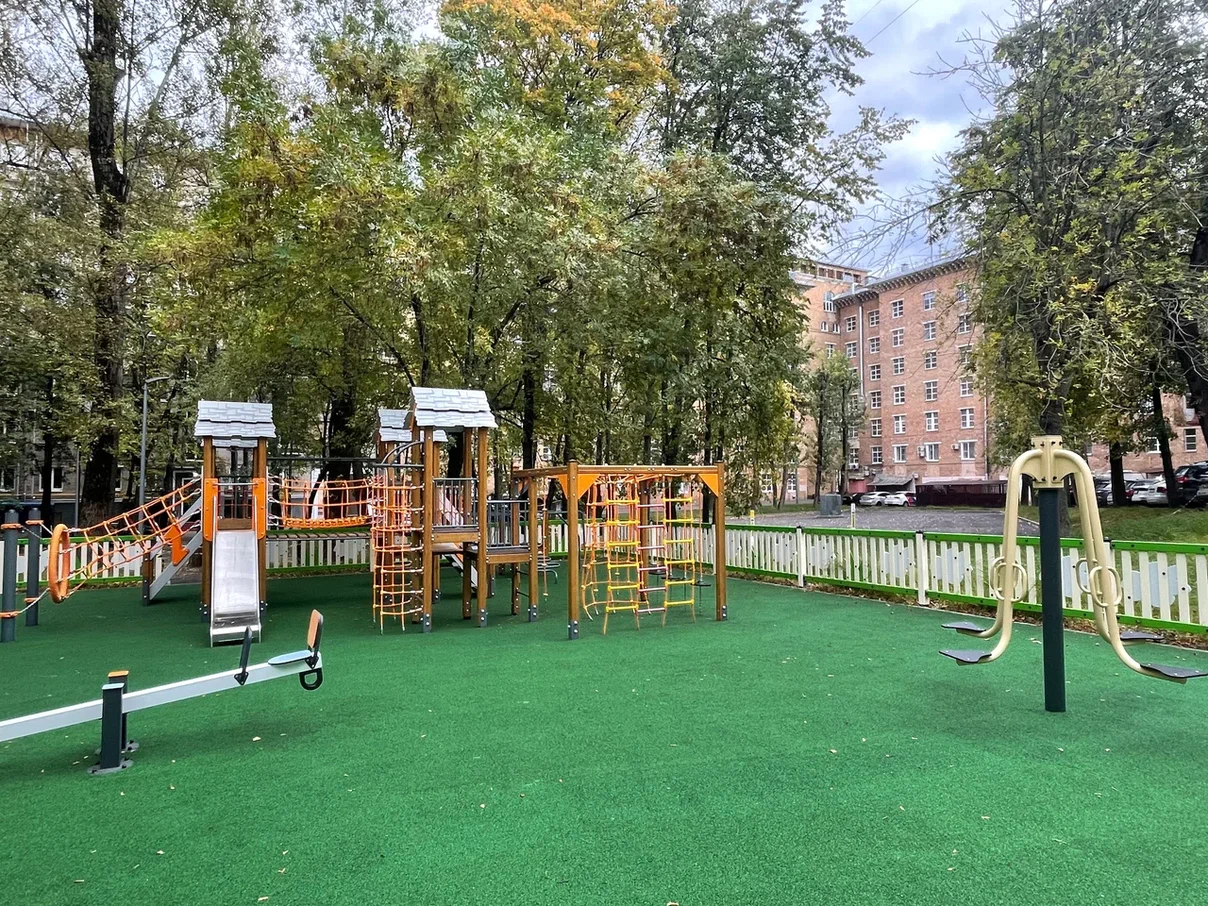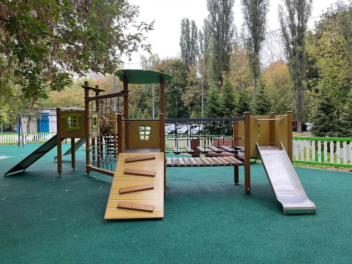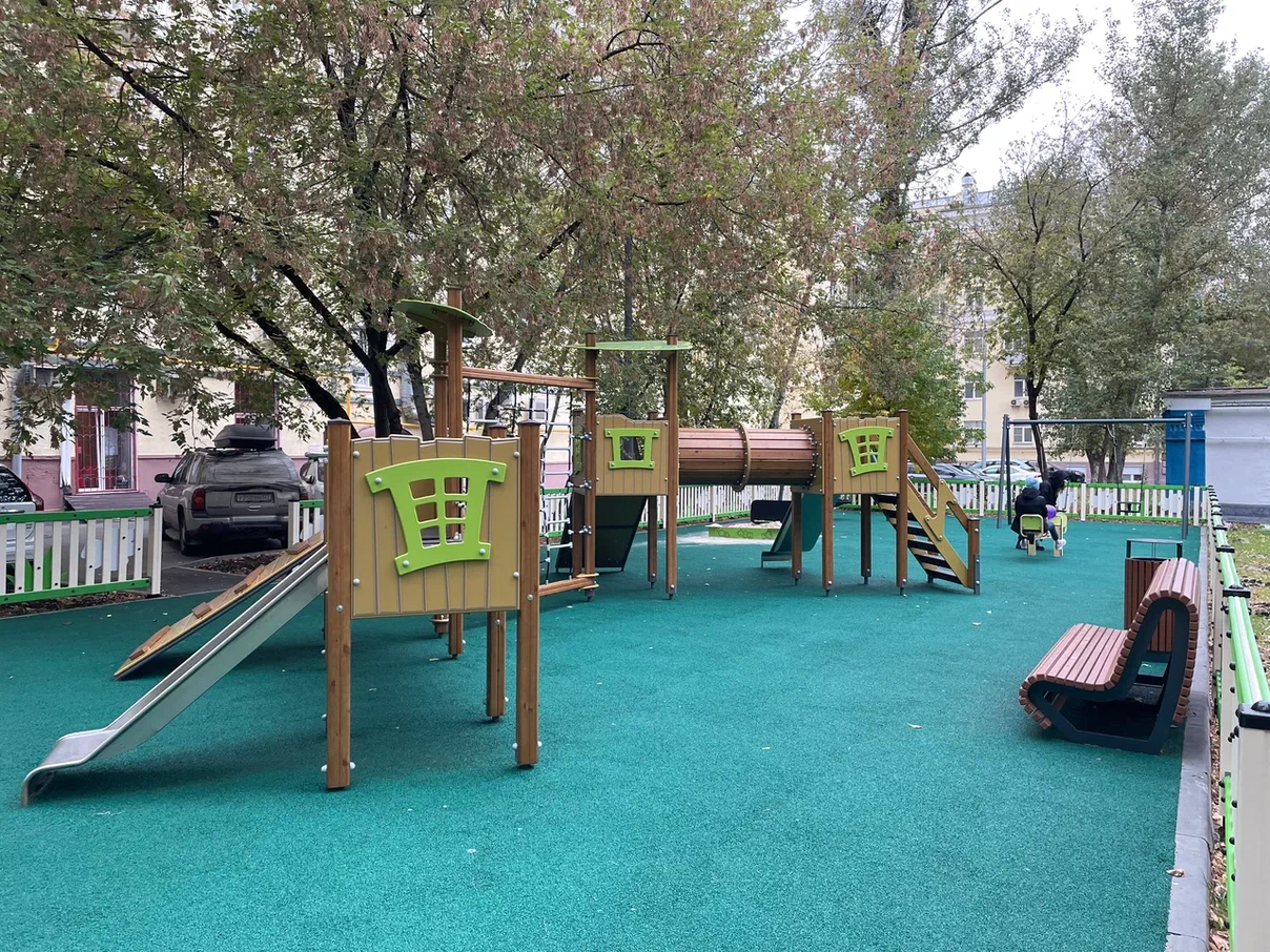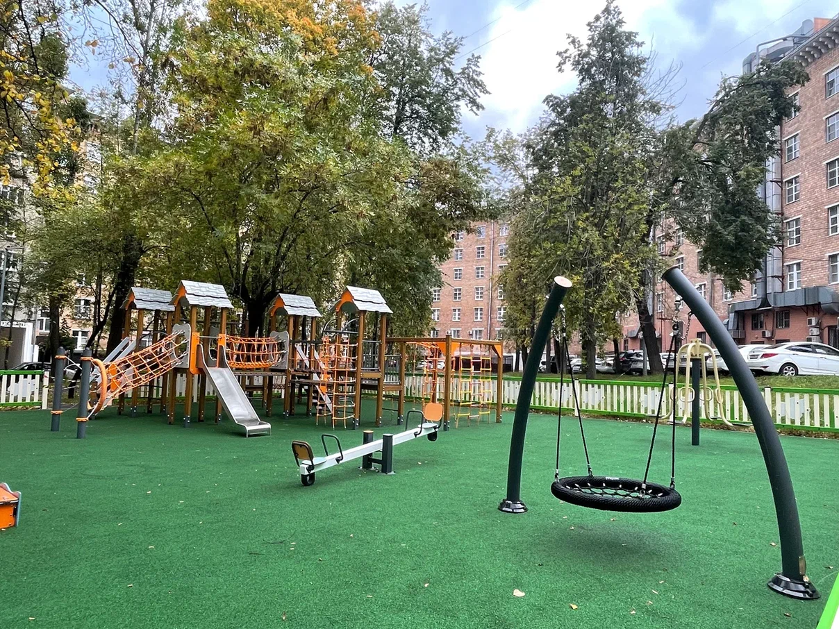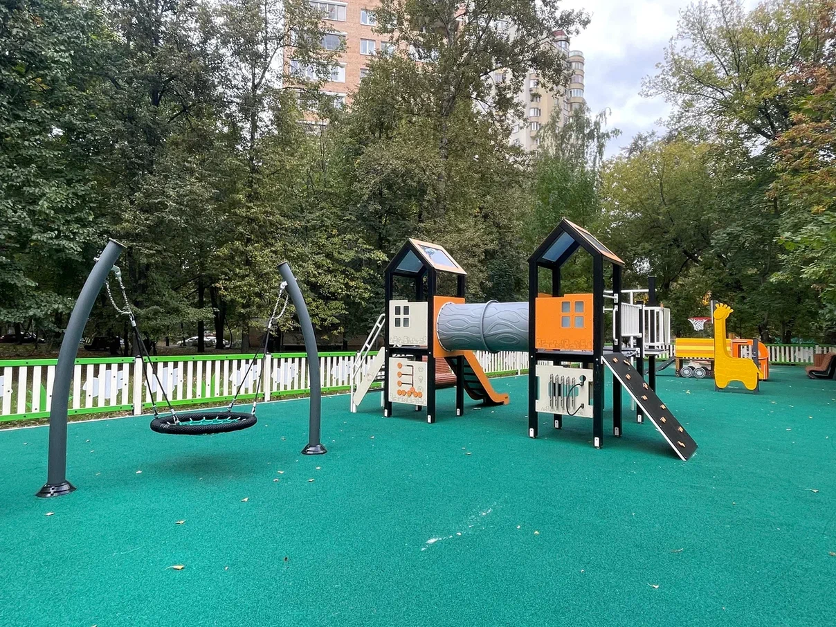 На обновленных территориях уложили травмобезопасное покрытие из травы и каучука. Старые малые архитектурные формы заменили на современные игровые комплексы с горками, качелями, лазалками, каруселями, лабиринтами и песочницами. Для родителей оборудовали зоны отдыха с удобными лавочками.