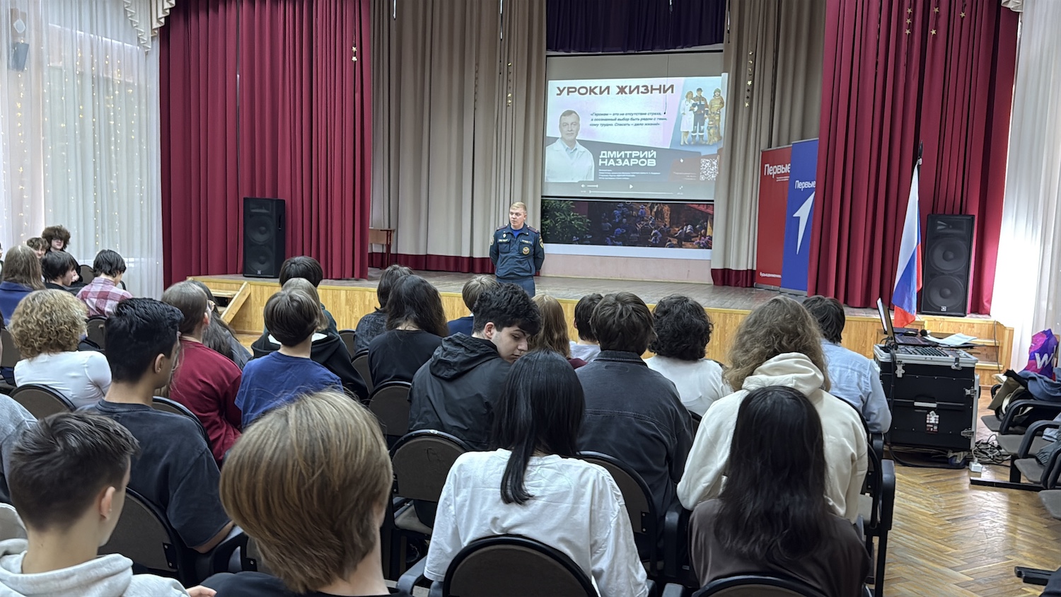 «Уроки жизни» — это разговоры с теми, кто выбрал своей работой спасать других. Цикл встреч школьников и студентов в ЮЗАО с представителями героических профессий: МЧС, спасателями, пожарными и врачами — организован Дмитрием Назаровым.