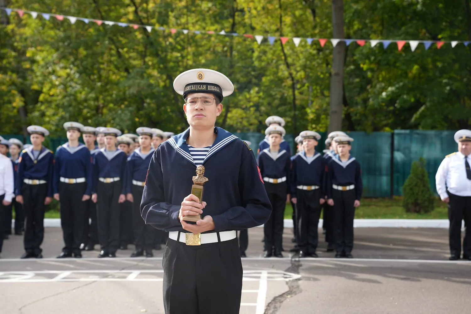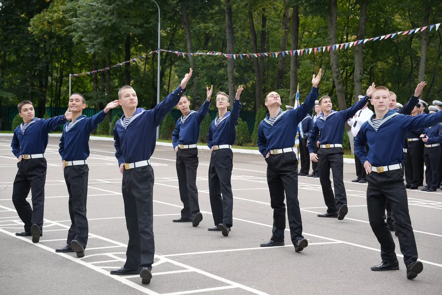 В завершение церемонии ученики 6-го класса Навигацкой школы с помощью морской флажковой азбуки просемафорили гостям: «Слава флоту России».