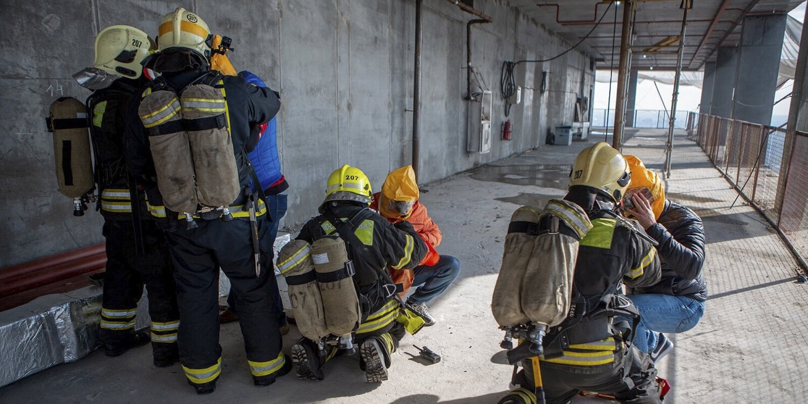 В задымленных помещениях пожарные используют дыхательные аппараты ДПА-300 на 30-40 минут. В них предусмотрено подключение к маске спасаемого, которая поможет дышать человеку в горящем здании. Кроме того, для этой цели существует капюшон-самоспасатель «Фенист», он рассчитан на 15 минут.