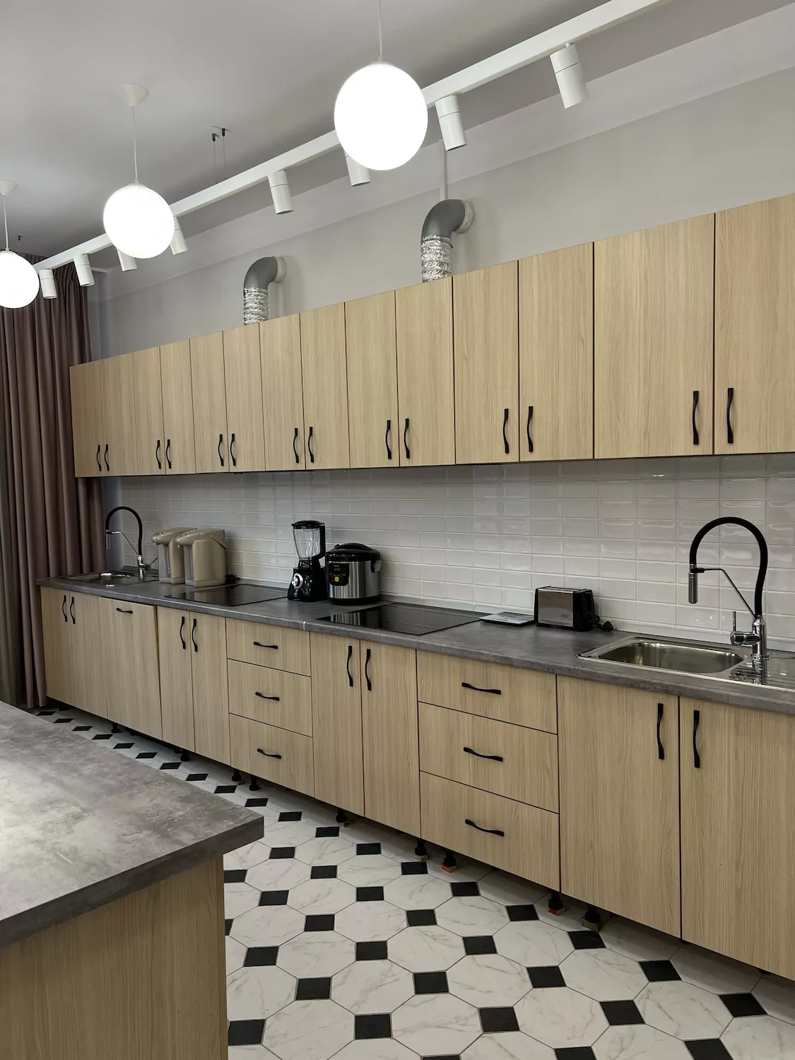 Внутри разместили читальный зал, зал для настольного тенниса, бильярдный зал, спортивную зону с душевыми, а также комнату для настольных игр и шахмат. Кроме того, предусмотрены кулинарная студия и помещение для шитья, актовый зал и уютные зоны: медиагостиная и тихая гостиная, две творческие мастерские для лепки и рисования, кафе со сценической площадкой.