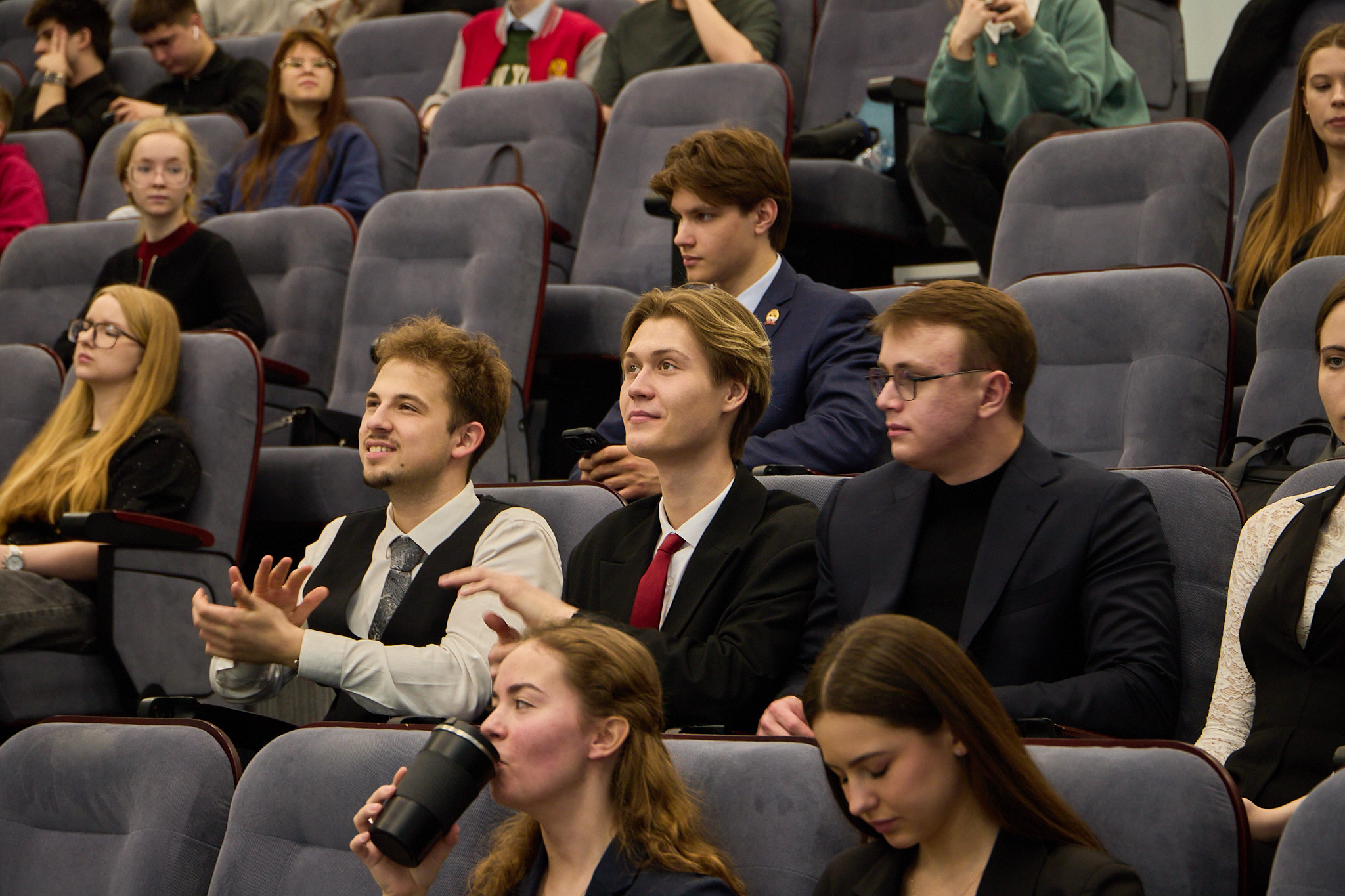 Евгений Андриенко рассказал студентам о проектах Центра развития, ориентированных на помощь молодежи в прохождении производственной практики и стажировок. Проект «Студенческие парламентские клубы» объединил более 60 вузов столицы — это свыше четырех тысяч будущих специалистов. Участники проекта получают возможность участвовать в парламентских дебатах и законотворчестве.