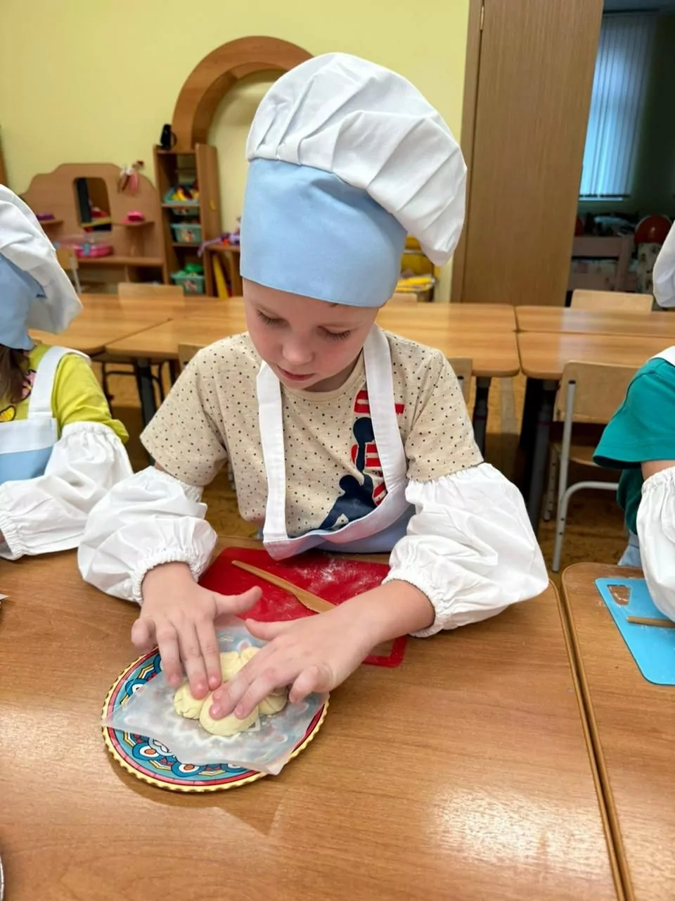 В самом начале занятия детям подробно рассказали о правилах безопасности и одели юных поваров в фартуки и колпачки. Весь необходимый инвентарь и ингредиенты уже ждали их на столах.