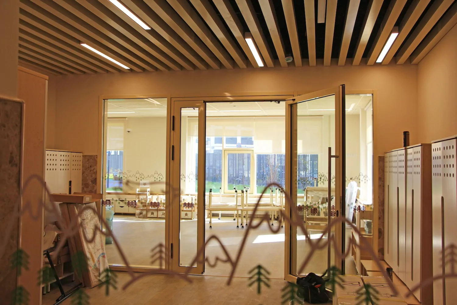 На трех этажах здания обустроили 10 групповых помещений, кабинеты для индивидуального и коллективного развития, просторные залы занятий спортом и творчеством, игровые зоны. Строители приступили к установке мебели и оборудования для будущих воспитанников.