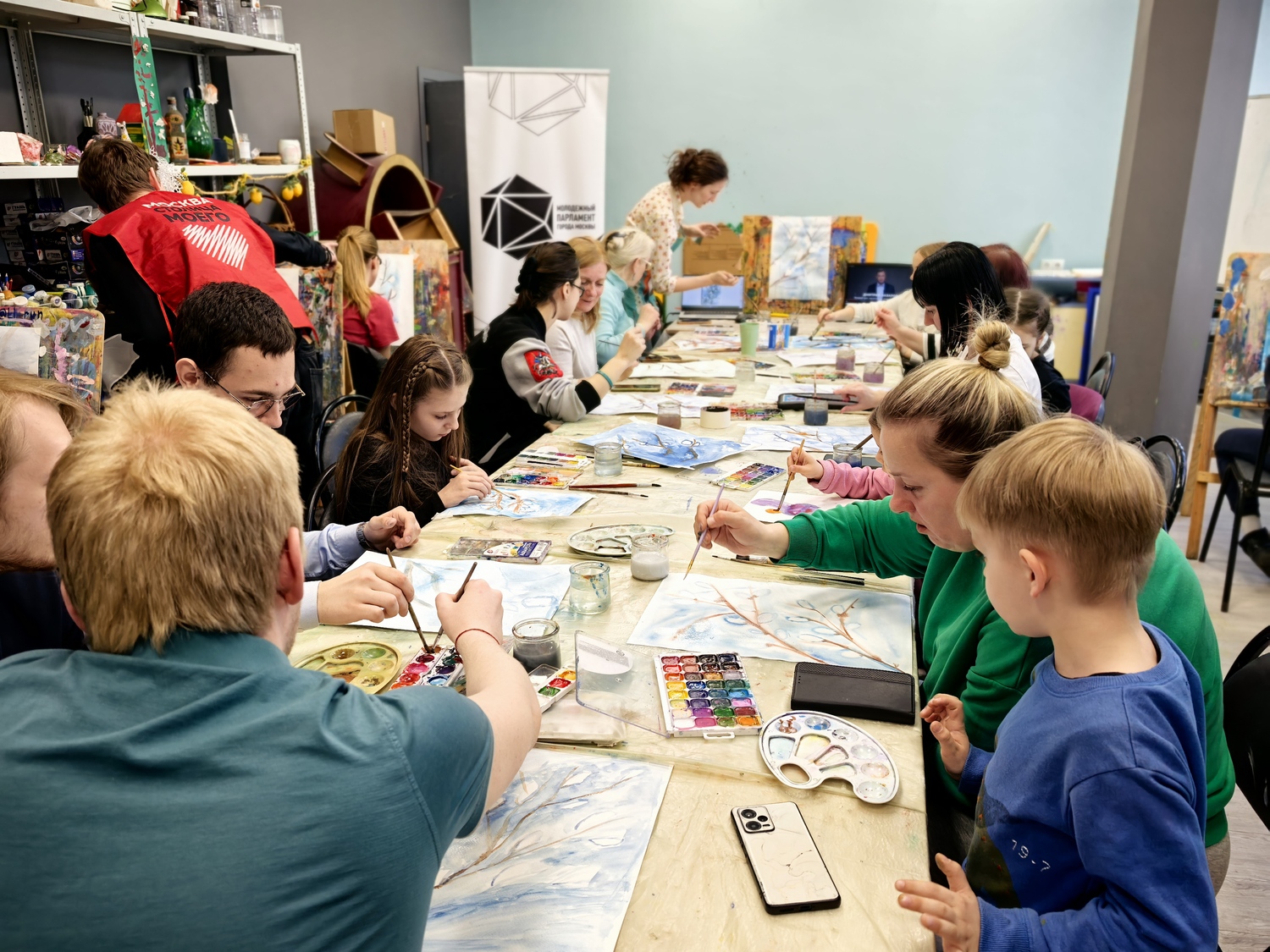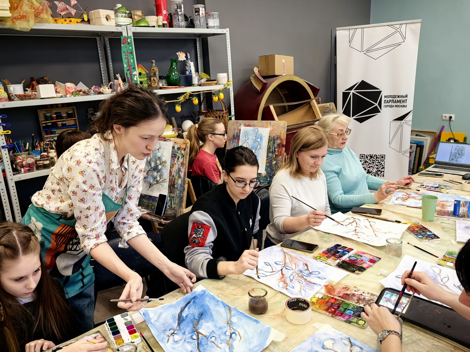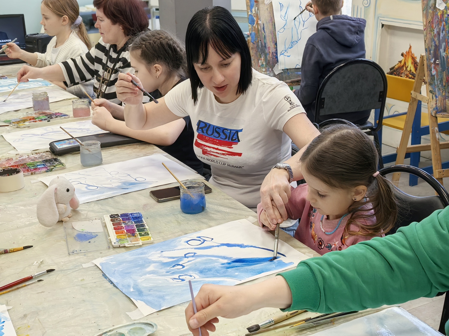 На занятии гости прослушали лекцию о символах и обычаях православной Пасхи. Затем под руководством наставников участники нарисовали тематические пейзажи и составили пасхальные композиции.