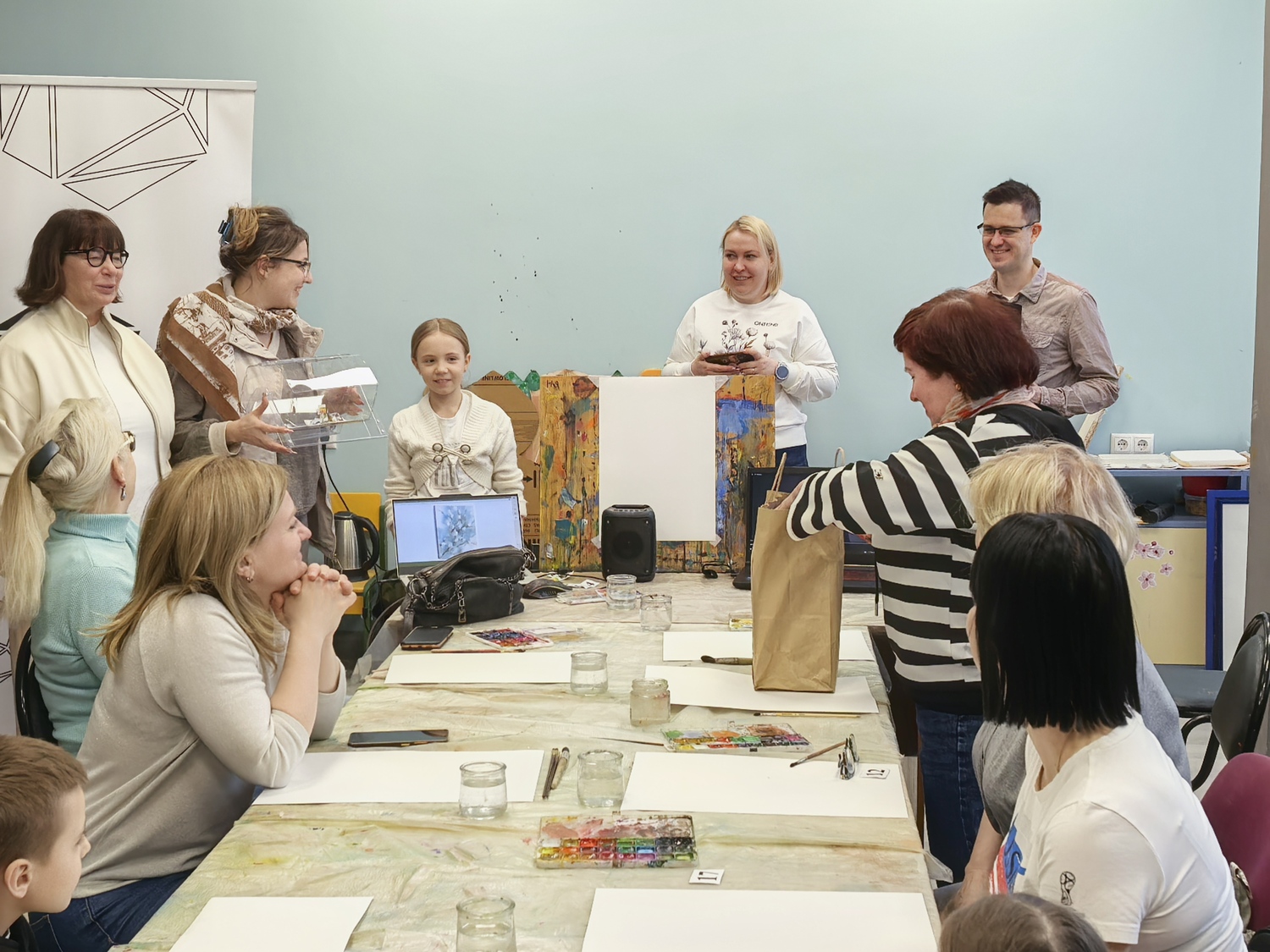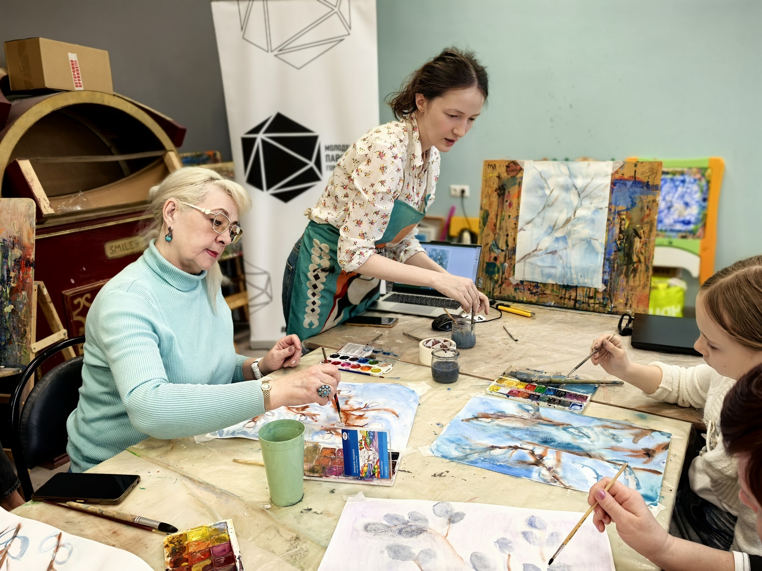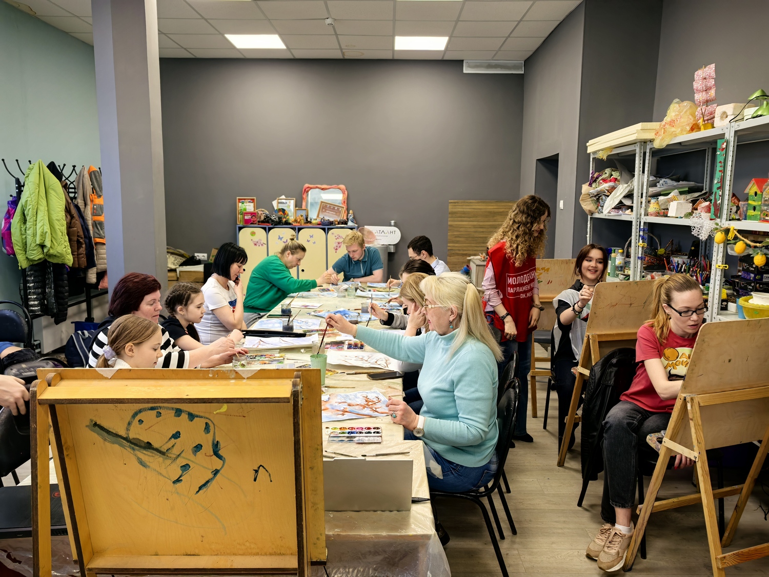 На занятии гости прослушали лекцию о символах и обычаях православной Пасхи. Затем под руководством наставников участники нарисовали тематические пейзажи и составили пасхальные композиции.
