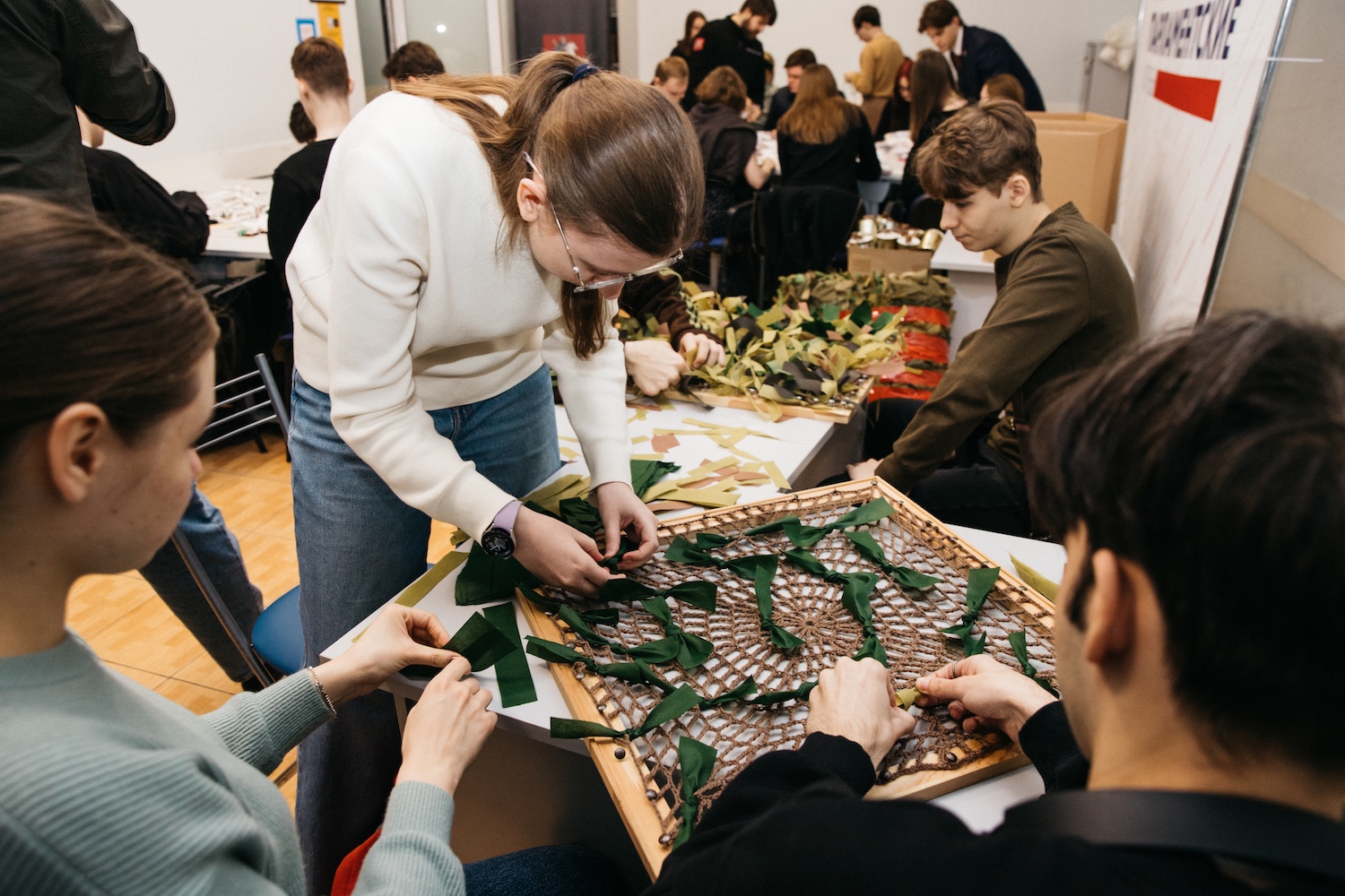 В Центре развития прошел очередной масштабный гуманитарный день в рамках акции «#СПКПомогает». Активисты Студенческих парламентских клубов развернули комплекс мастер-классов по изготовлению необходимых для фронта вещей. Почетными гостями мероприятия стали ветеран боевых действий, руководитель Московской ассоциации ветеранов СВО, член Партии «ЕДИНАЯ РОССИЯ» Владислав Гусев; кавалер Ордена Мужества, участник СВО Александр Постников, помощник Героя России, депутата Государственной думы Российской Федерации, члена фракции «ЕДИНАЯ РОССИЯ» Дмитрия Саблина.