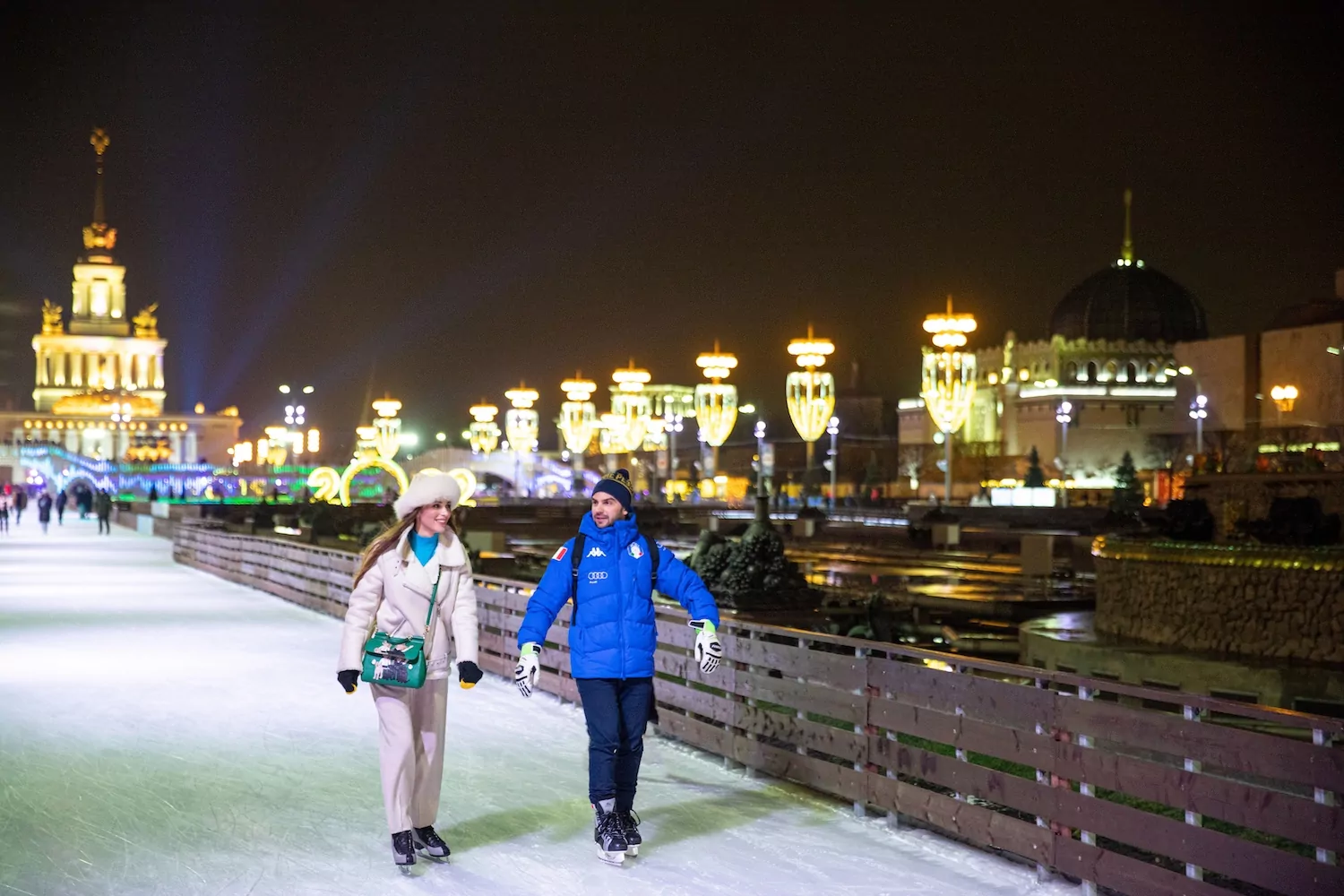 Залитые льдом дорожки вновь разместят вдоль Главной аллеи ВДНХ, вокруг фонтанов «Дружба народов» и «Каменный цветок». Организаторы предусмотрели прокат и заточку коньков, камеры хранения и зону отдыха. В кафе около ледовой площадки предложат горячие блюда и напитки, включая сбитень и сибирский чай. Возле павильона № 1 «Центральный» разобьют арену для хоккейных матчей и отдельную детскую зону.