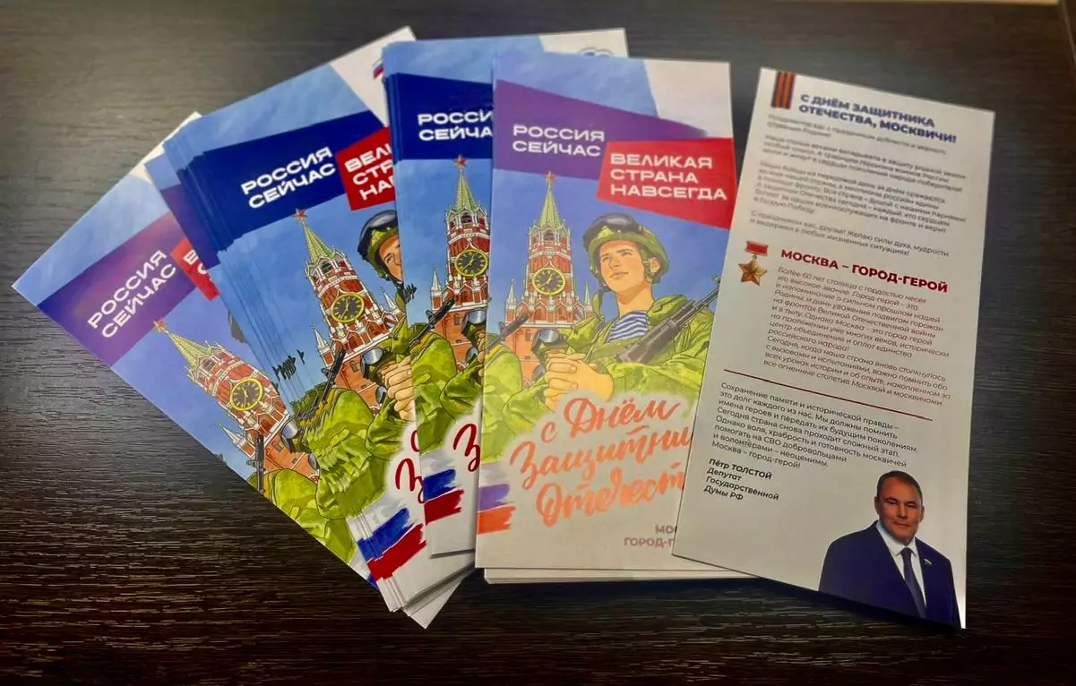 «Москва — сердце России, и наши воины это сердце защищали во все времена. Для меня наш город — живая память о предках, которые стояли за родную землю. Сегодня их правнуки тоже там, где нужна защита. И пока мы помним эту связь, пока наши сердца бьются вместе, Россия была, есть и будет непобедимой. С праздником!», — поздравил защитников Отечества вице-спикер Государственной думы Петр Толстой.
