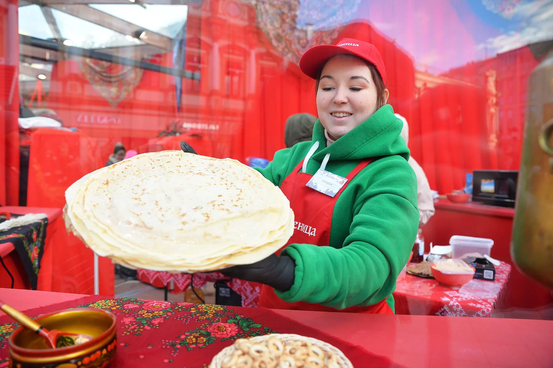 На Тверской площади организуют купеческую гостиную. Уютную атмосферу создадут шторы из бархата, расписная посуда и диваны. Все это, как утверждается, расположит к традиционному масленичному чаепитию.