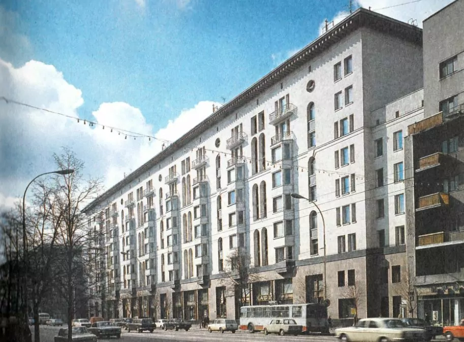 Однако построен он в 1977 году по проекту мастерской № 6 «Моспроекта-1» под руководством Зиновия Розенфельда для работников ЦК КПСС. В квартире № 13 с 1981 по 1994 годы проживала Алла Борисовна Пугачева, которая, по ее признанию, очень любила эту квартиру. Здесь же жил и Марк Захаров, дочь Пугачевой Кристина Орбакайте и многие другие, не относящиеся к ЦК КПСС люди, разбавляющие своей известностью незаметный на первый взгляд труд высших партийных работников. Когда дом построили, его сразу прозвали «олимпийским», так как на первом этаже продавались сувениры с символикой московской Олимпиады-80.