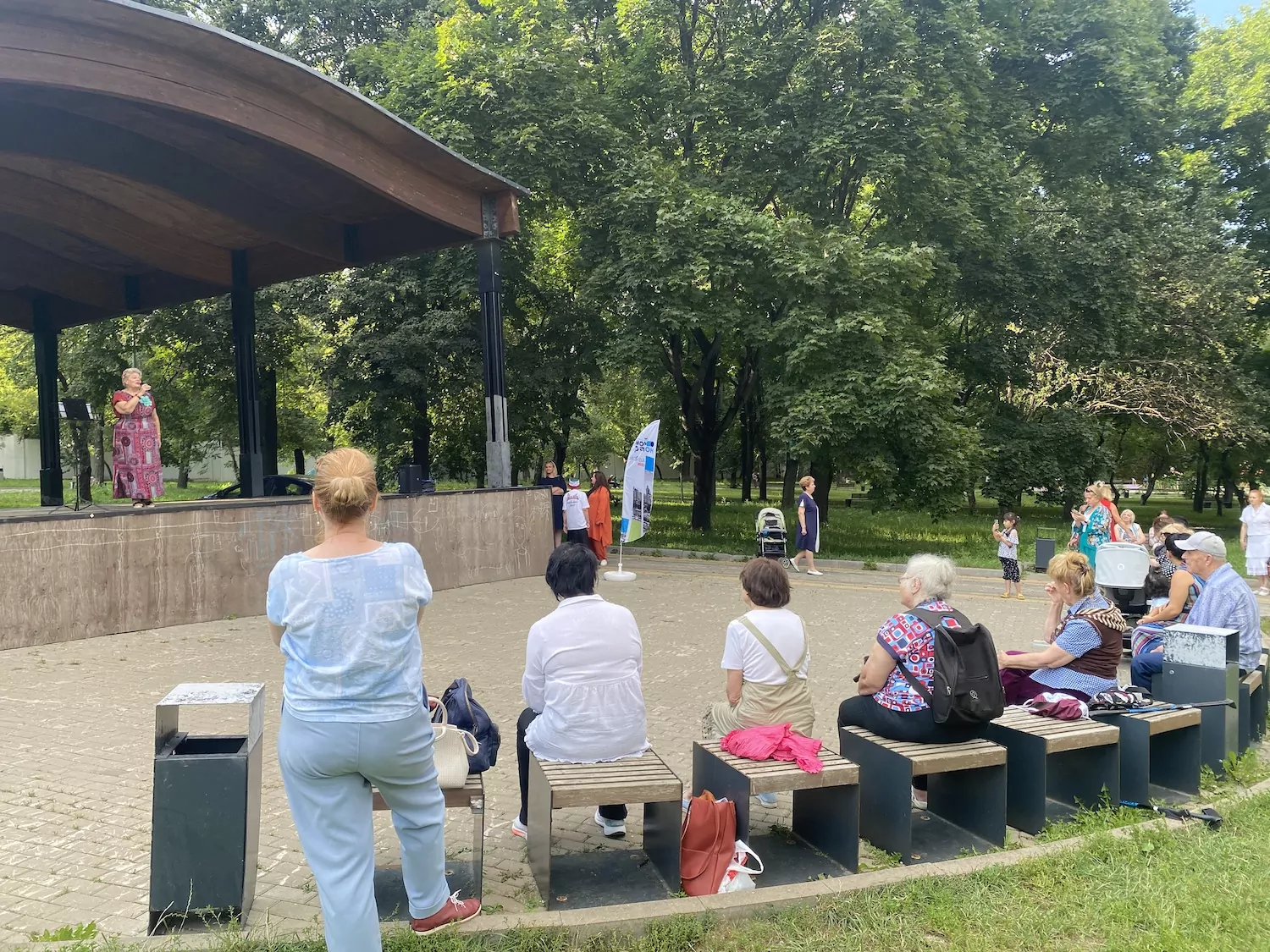 Песенная программа состояла из популярных хитов прошлых лет и современных композиций. Жители района с удовольствием танцевали и подпевали.