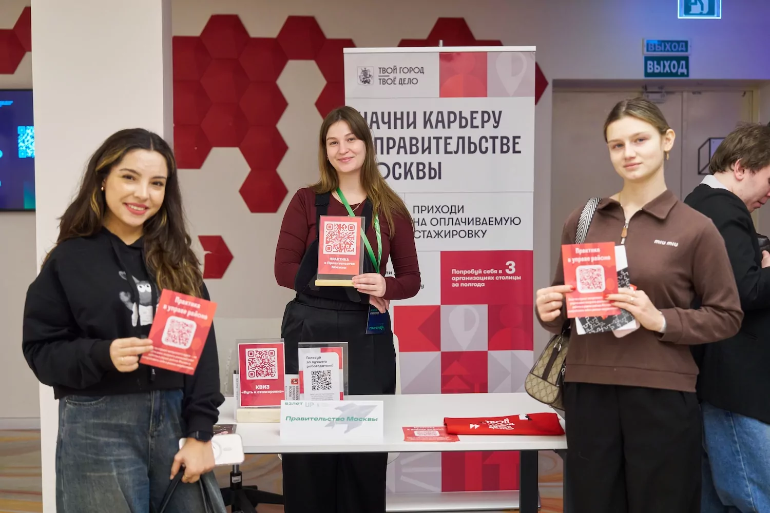 На ярмарке вакансий участники знакомились с представителями крупных компаний, среди которых были представлены «Банк России», Газпромбанк, «Аэрофлот», РЖД, SuperJob, «Юнирусь», «Сколтех», hh.ru, «Москвич», «Теремок» и другие организации, заинтересованные в начинающих специалистах.