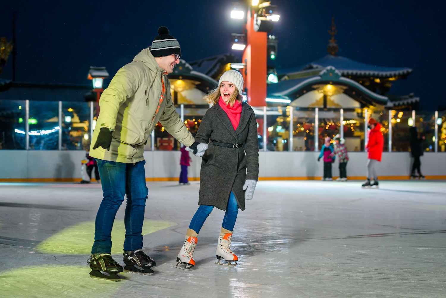 Экипировку, включая коньки, не обязательно брать с собой: на площадках доступны пункты проката. За некоторые арендуемые предметы придется оставить залог. Для коньков это две тысячи рублей.