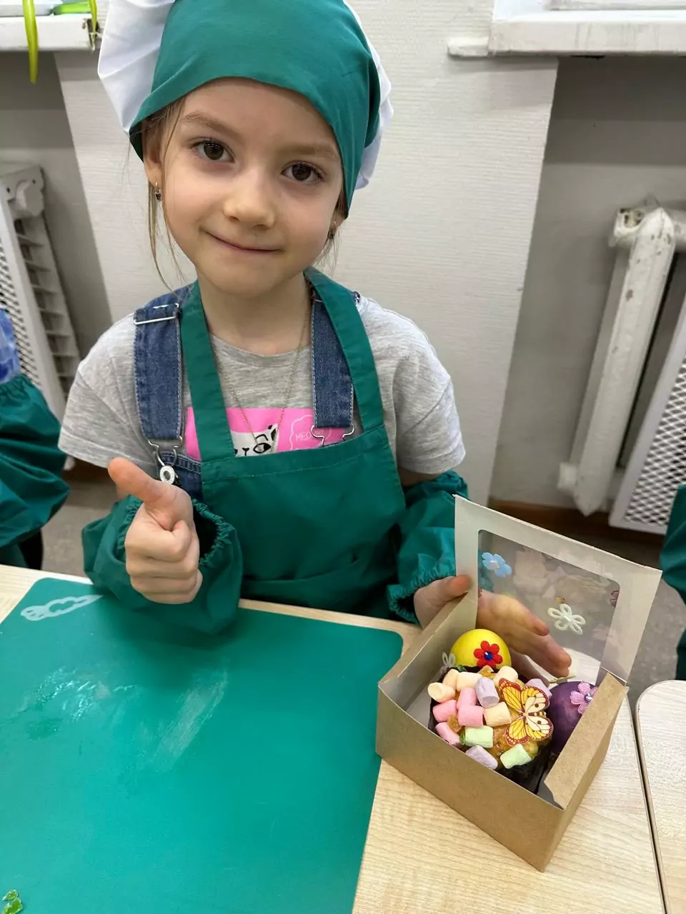 Перед началом занятия технолог рассказала детям, что нужно вымыть руки и надеть специальную одежду — кулинары используют ее не только для красоты, но и для соблюдения гигиенических норм.