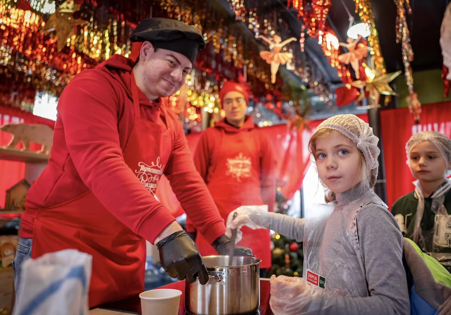Кулинарные студии открыты на 10 локациях, включая бульвар Дмитрия Донского, Ореховый бульвар, улицы Теплый Стан, Святоозерская и Профсоюзная, а также в Олимпийской деревне. Дети готовят суп-пюре «Морозко», оливье, курицу в сливочном соусе с грибами, мятные сырники «Зимние снежинки», леденцы с апельсином и печенье в форме елочных игрушек. Занятия сопровождаются рассказами о новогодних традициях.