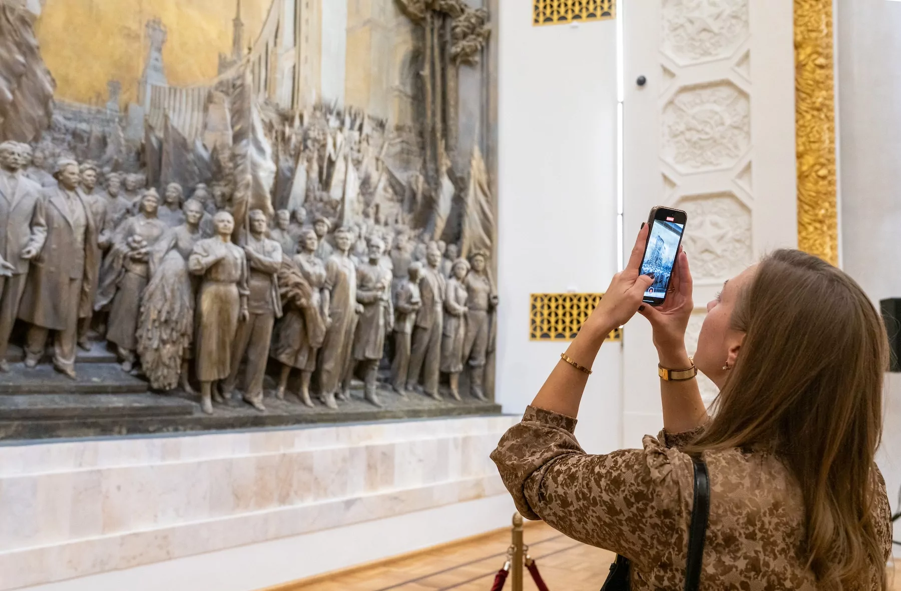 Она уточнила, что за два месяца было организовано 300 экскурсий. Посетители могут посмотреть на картины и скульптуры советского времени.