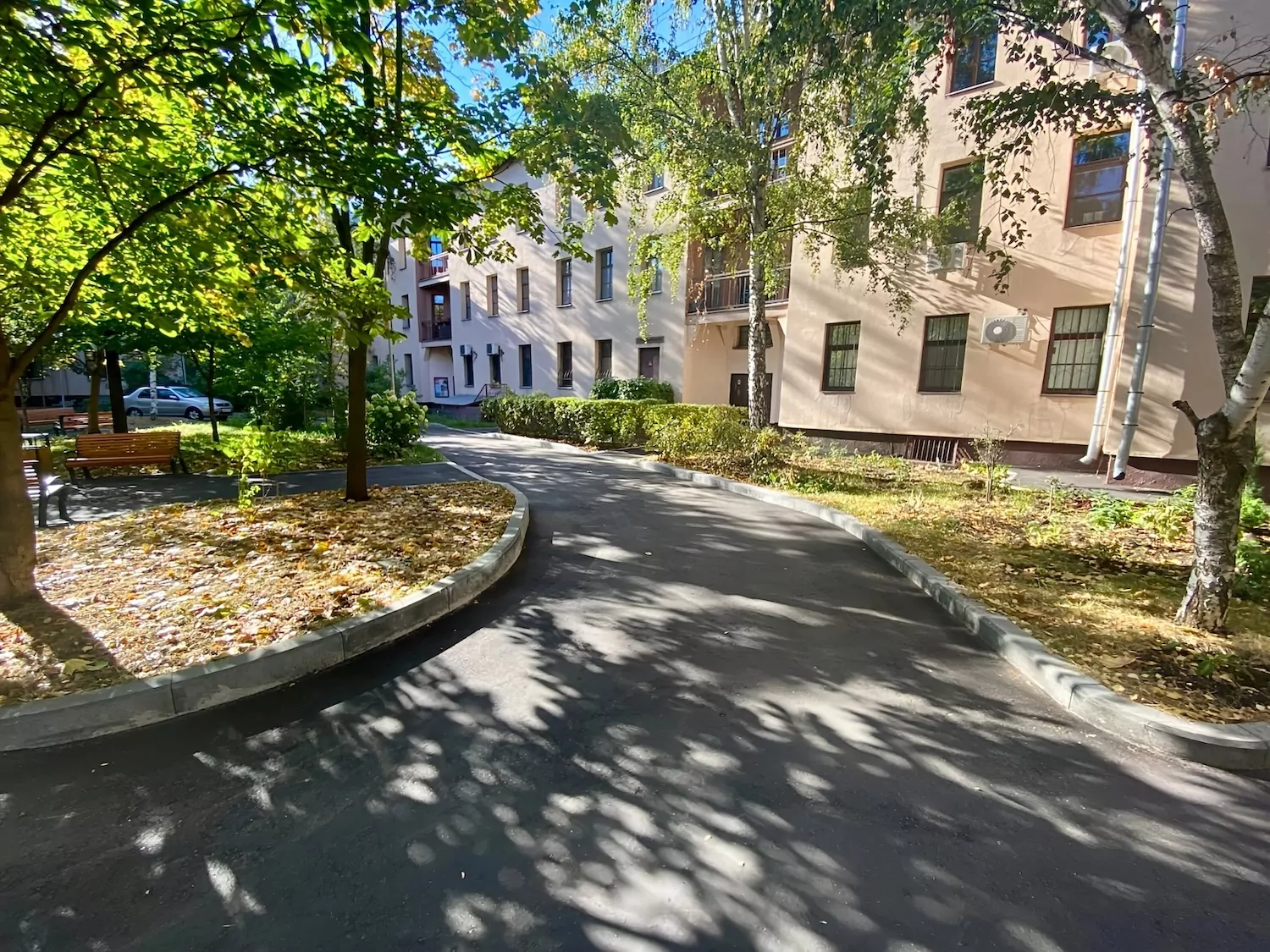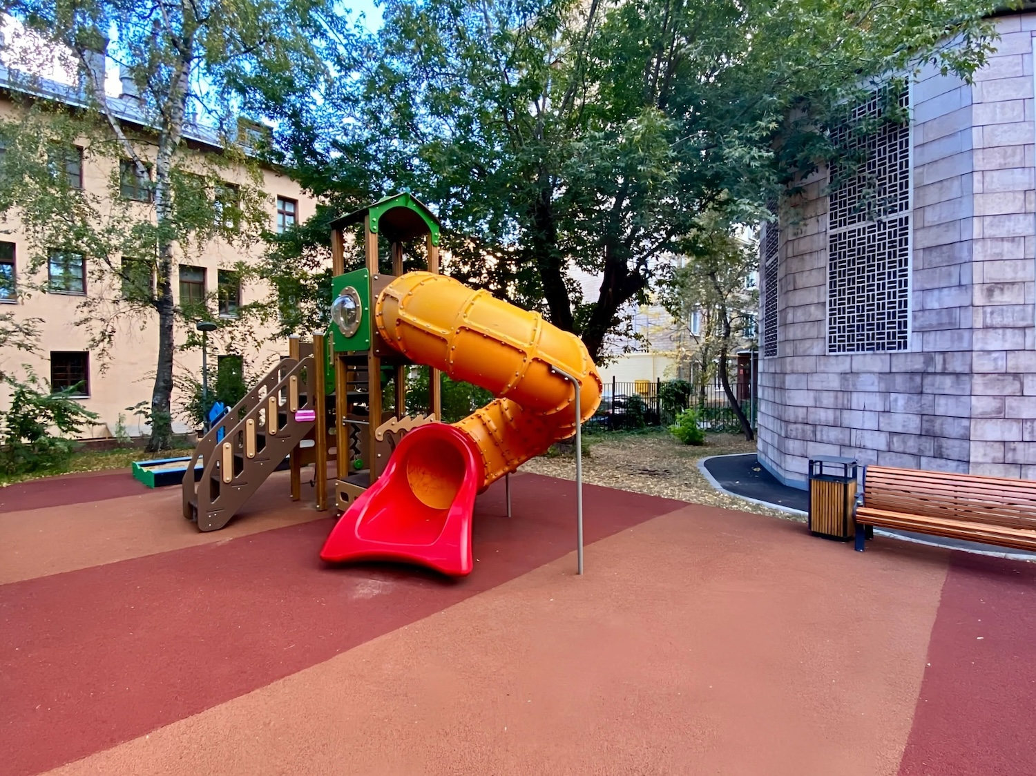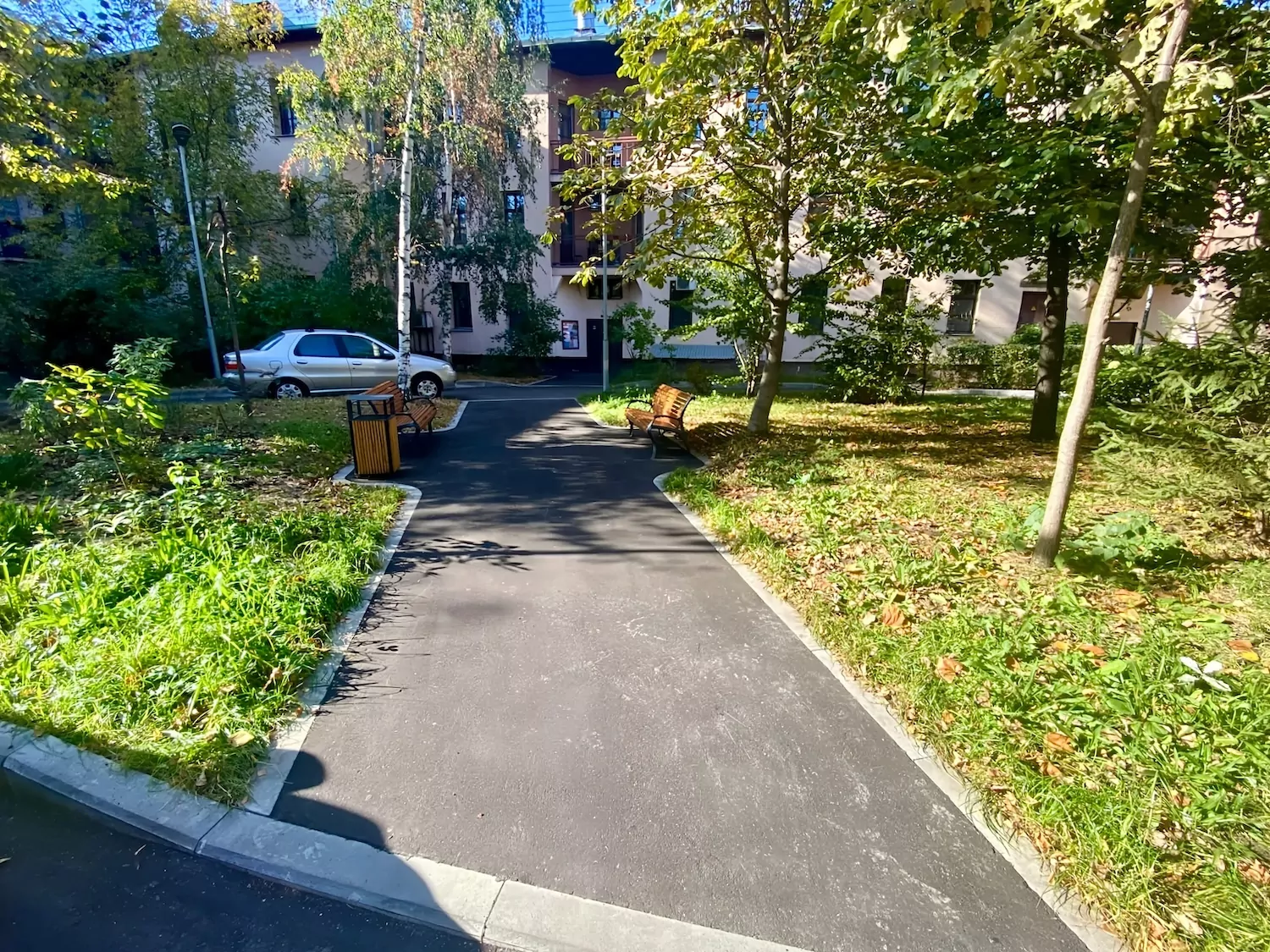 Центром двора стала современная площадка для детей, занимающая более 170 кв. м. Здесь уложили безопасное покрытие и установили четыре конструкции: для малышей, детей постарше и школьников. Для комфорта жителей обустроили зоны отдыха с новыми лавочками, урнами и современными фонарями. Обновленное пространство подходит для прогулок, игр и отдыха.