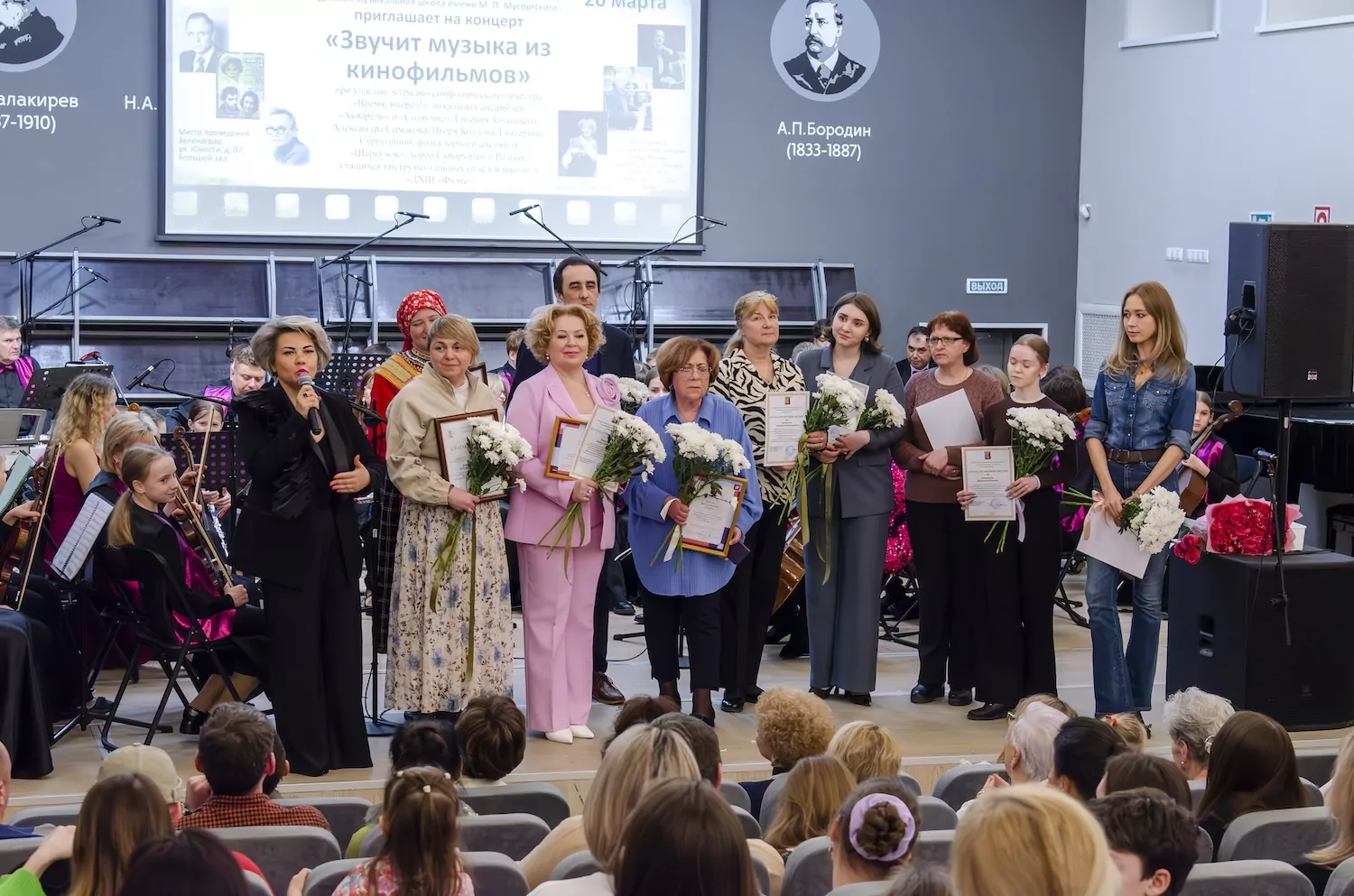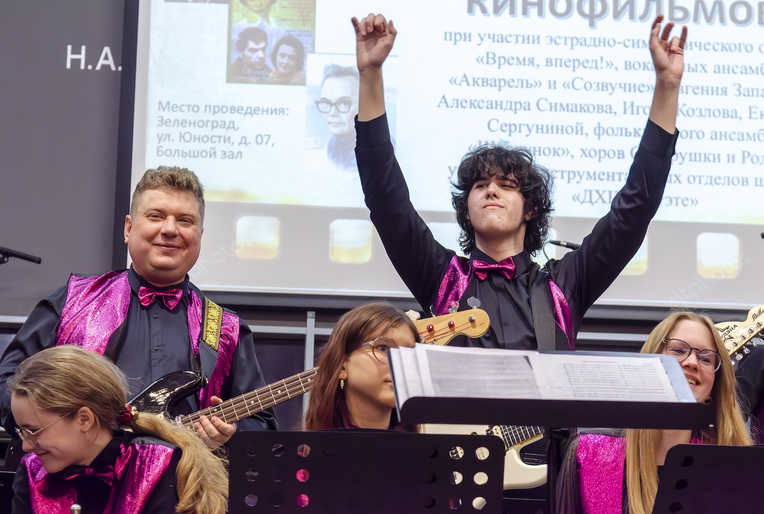 Второе отделение открыл оркестр «Время вперед», в состав которого входят преподаватели и учащиеся. Коллектив представил музыку из кинокартины «Гусарская баллада». Во время звучания песни «Александра» из фильма «Москва слезам не верит» к выступающим присоединились зрители в зале. Программу сопровождали комментарии об истории создания каждой композиции. В завершение преподавателям школы вручили благодарственные письма от Совета депутатов района Матушкино.