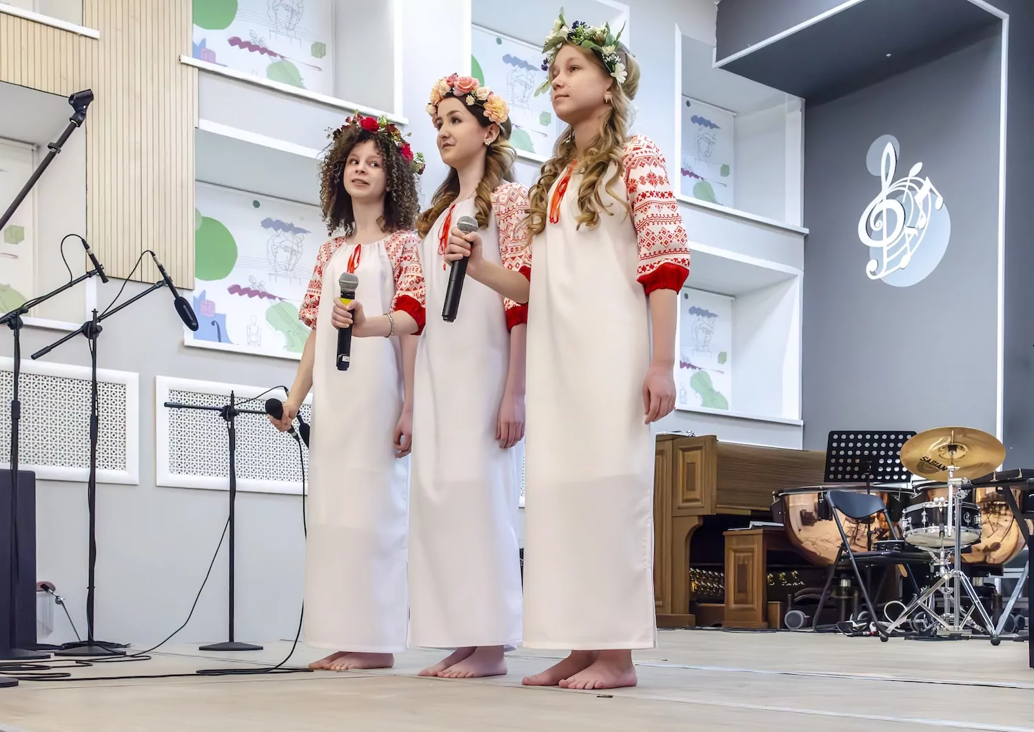 В первом отделении мероприятия выступили ученики музыкальной и хореографической школ. Исполнение вокальных партий сочеталось с танцевальными номерами. Народные песни из Рязанской области представил фольклорный ансамбль.