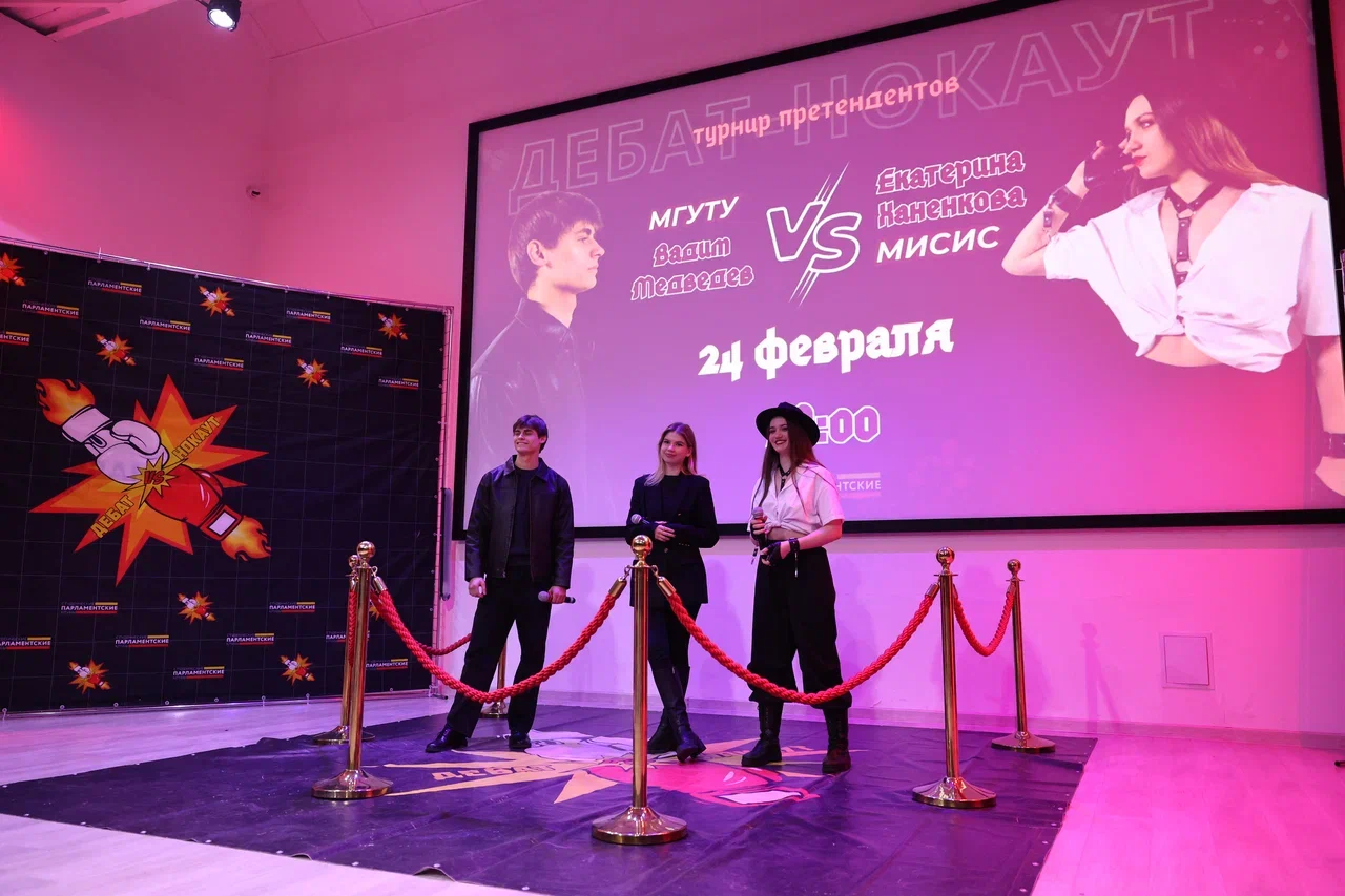 - Вадим Медведев (СПК МГУТУ им. К. Г. Разумовского, «ЗА») против Екатерины Ханенковой (СПК МИСИС, «ПРОТИВ»).