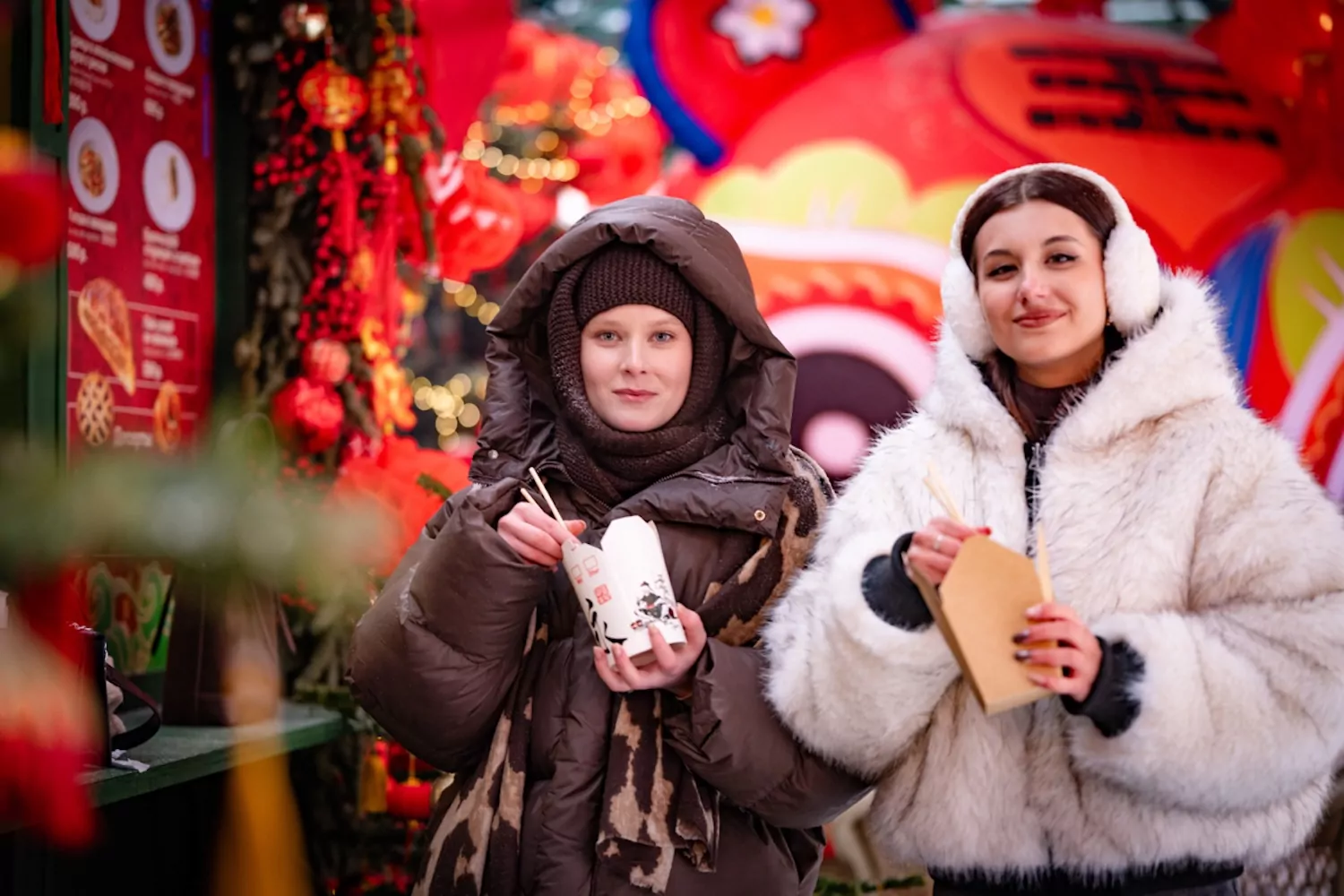 Гастрономическая часть фестиваля представлена уличными шале с аутентичными блюдами: лапшой Ло Мейн с разными начинками, тахян, жареными пельменями цзяоцзы, калачами с уткой по-пекински, баоцзы, мантоу. На десерт — жареное молоко и карамелизированные фрукты тан хулу.