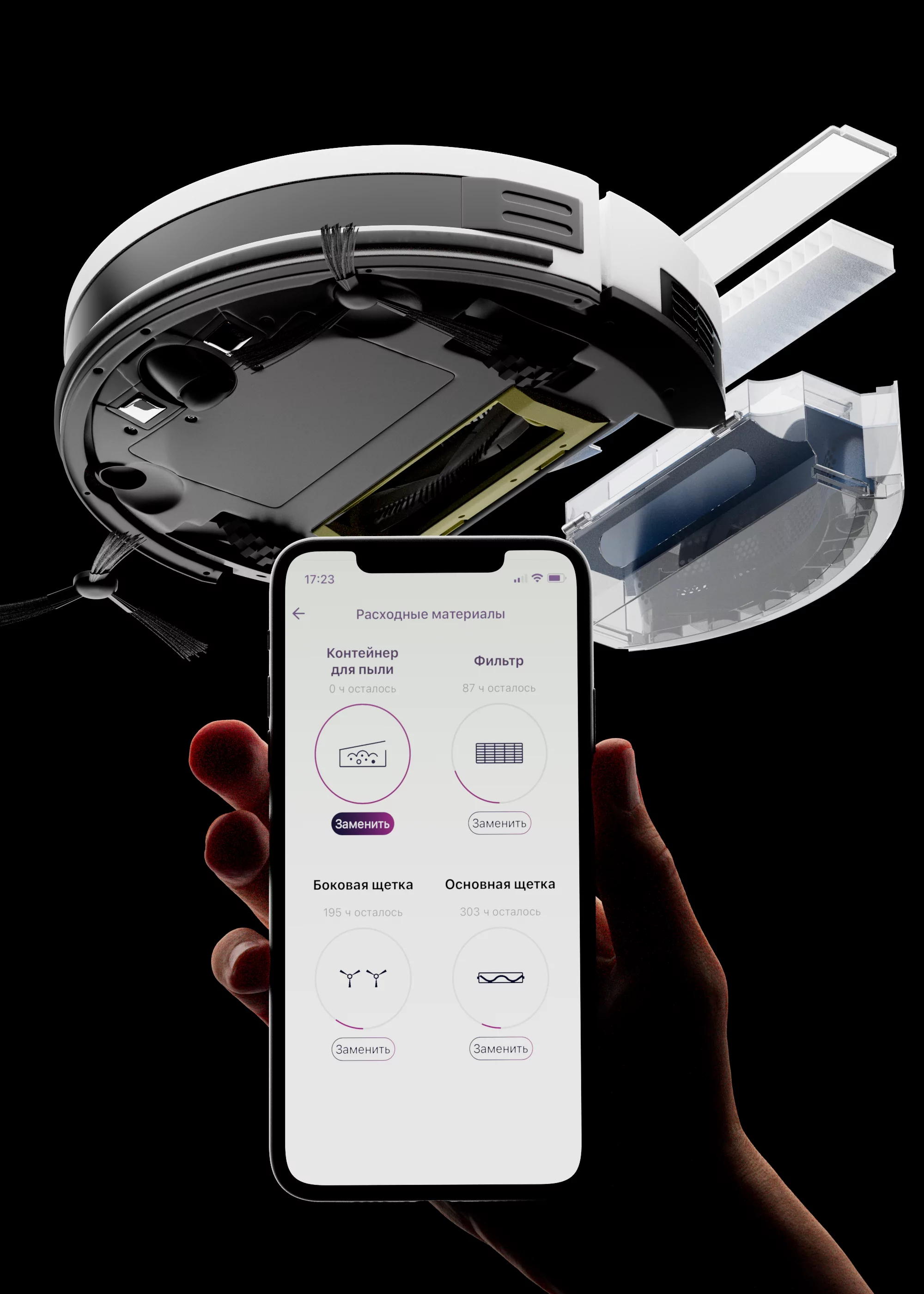 Робот-пылесос управляется со смартфона через специальное приложение экосистемы IQ Home. Благодаря лидару робот будет выполнять команды с высокой точностью.