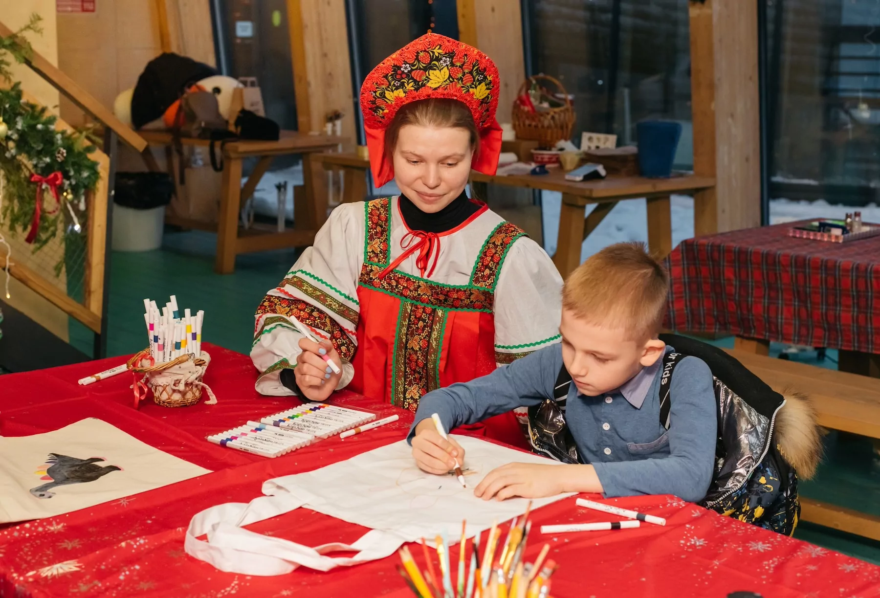 На центральной площади организуют праздничную ярмарку. Посетители смогут продегустировать блины, приготовленные по рецептам поваров из различных регионов России. Также на ярмарке представят игрушки, изготовленные из дерева, глины и соломы. Эти материалы применяются для создания игрушек в традиционном русском стиле.