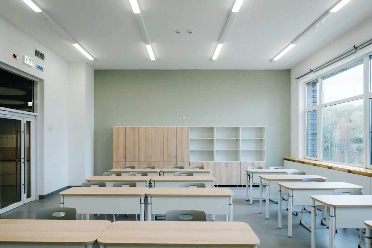Новый корпус оснастили адаптивной мебелью и современным оборудованием: интерактивными досками и проекторами. Здесь создали профильные кабинеты, ИТ-полигон, лабораторию и классы для изучения естественных наук. В здании расположили два спортзала с зонированием и один со скалодромом, библиотечное пространство для мероприятий и актовый зал на 660 мест.