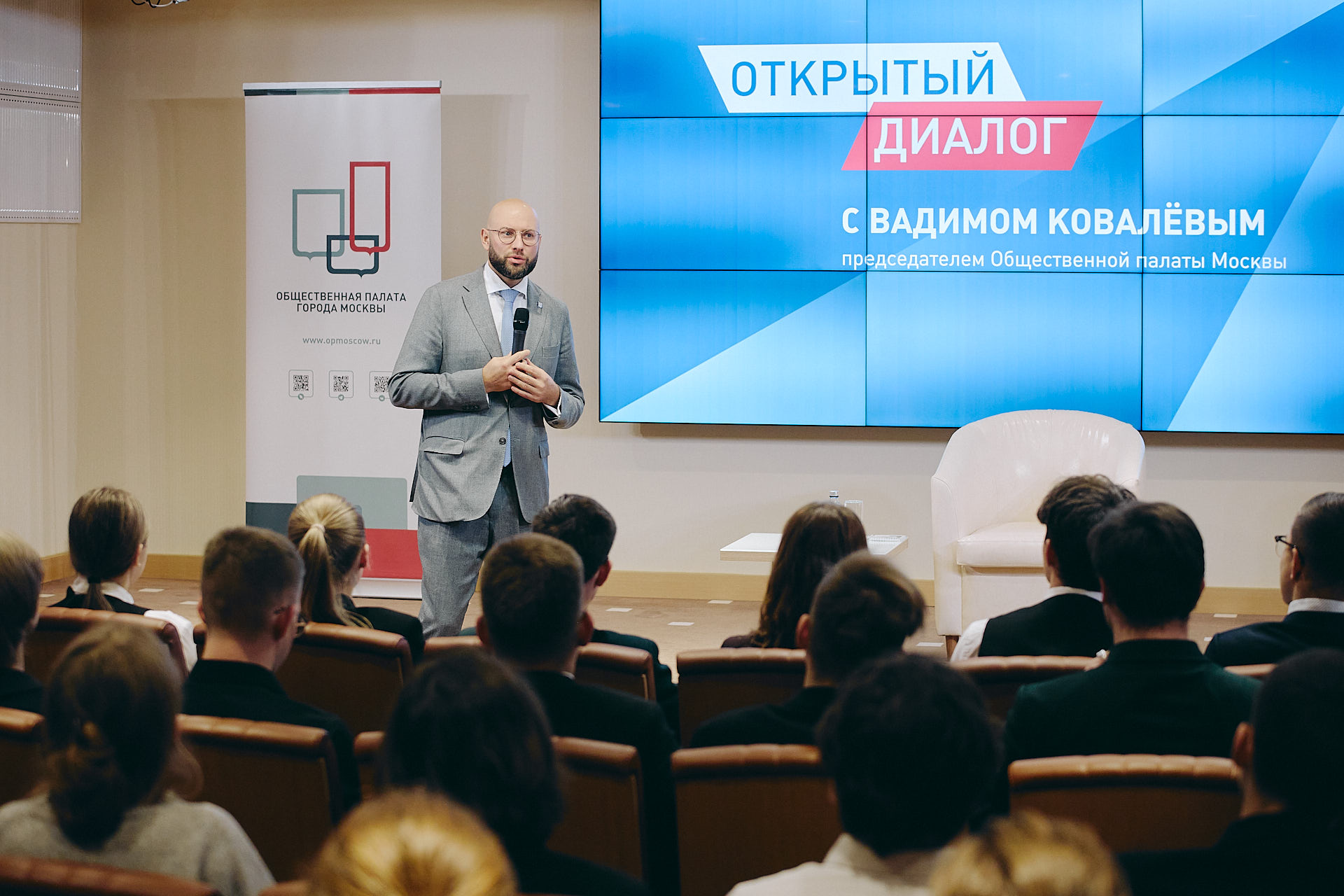 В ходе диалога Ковалев рассказал о своем личном пути, важности участия в жизни общества, а также о том, насколько важна роль молодежи и ее участие в развитии общества современной России.