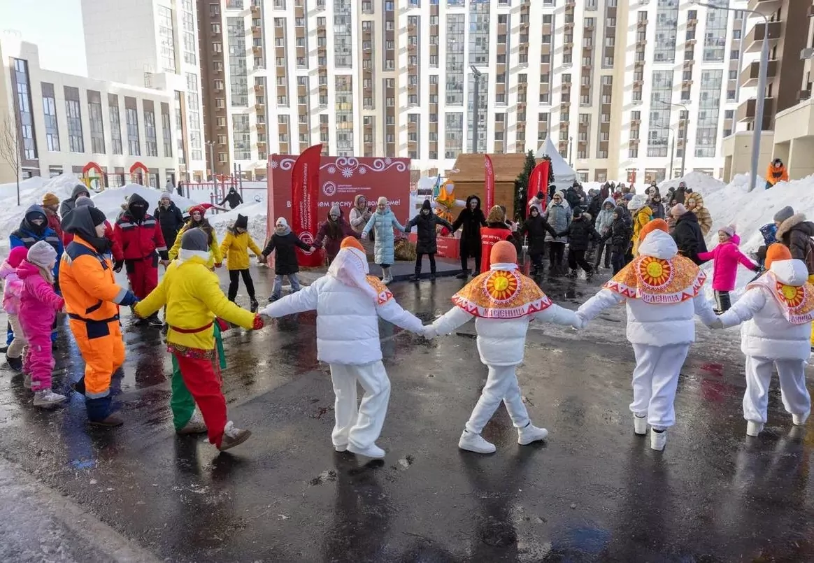 Встреча весны для новоселов сразу двух корпусов дома № 2 по улице Николая Озерова, возведенного по программе реновации, прошла на общей придомовой территории. Для гостей праздника устроили концерт, игры для детей и взрослых на свежем воздухе, а также приготовили традиционное масленичное блюдо — горячие блины.