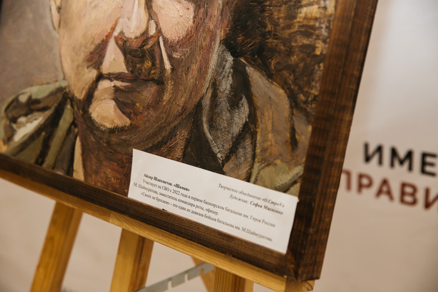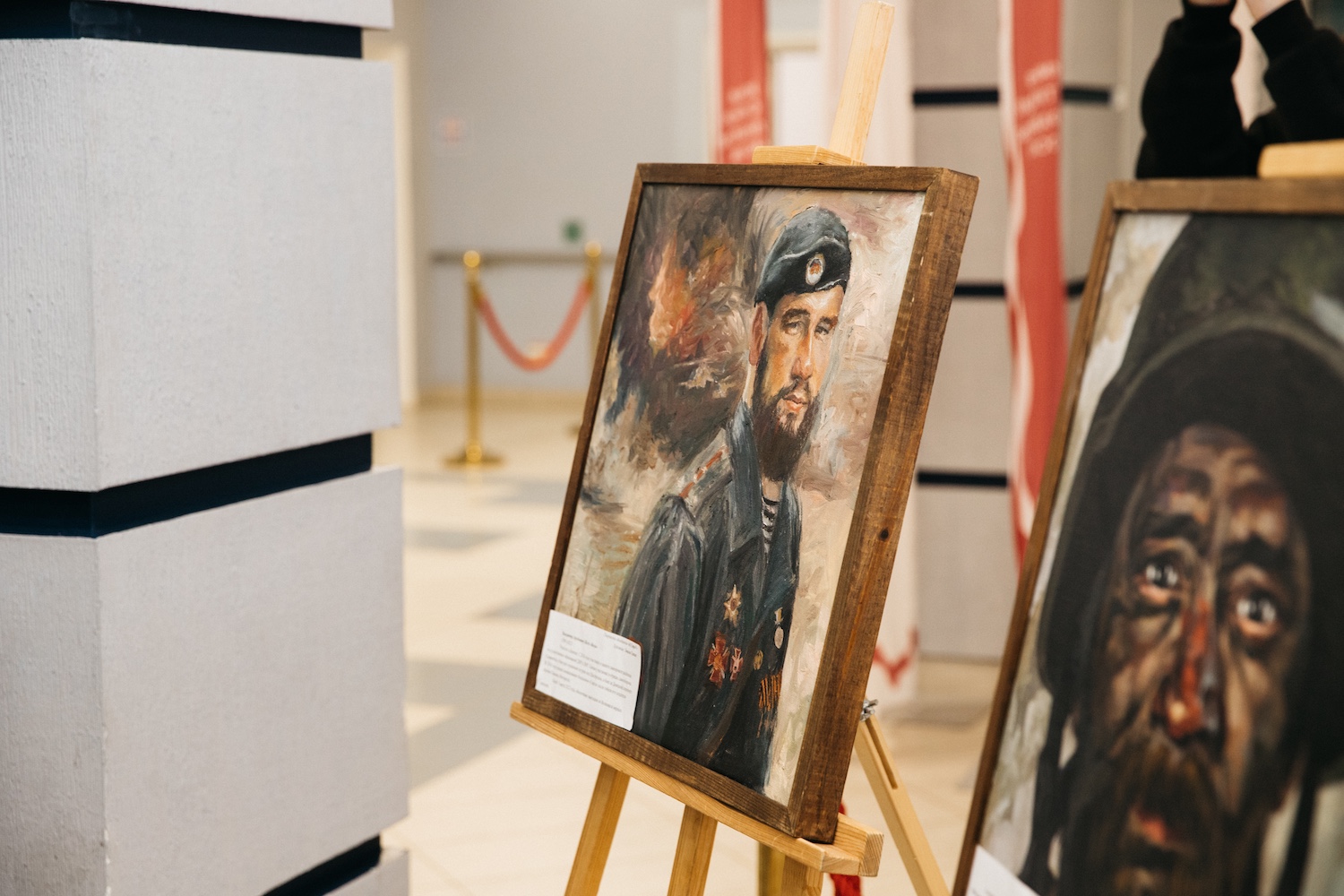 На выставке представлена серия портретов «Герои Донбасса» — образы тех, кто в 2014 году встал на защиту родной земли, а также портреты героев нынешних боевых действий. Живописные работы выполнены мастерами современной художественно-изобразительной школы из Строгановского университета: Иваном Теньковым, Саввой Логиновым, Татьяной Свадковской, Анастасией Назаркиной, Эмилией Гамзас, Софьей Михненко. Куратор выставочного проекта — Савва Логинов, руководитель творческого объединения «О.СтроV».