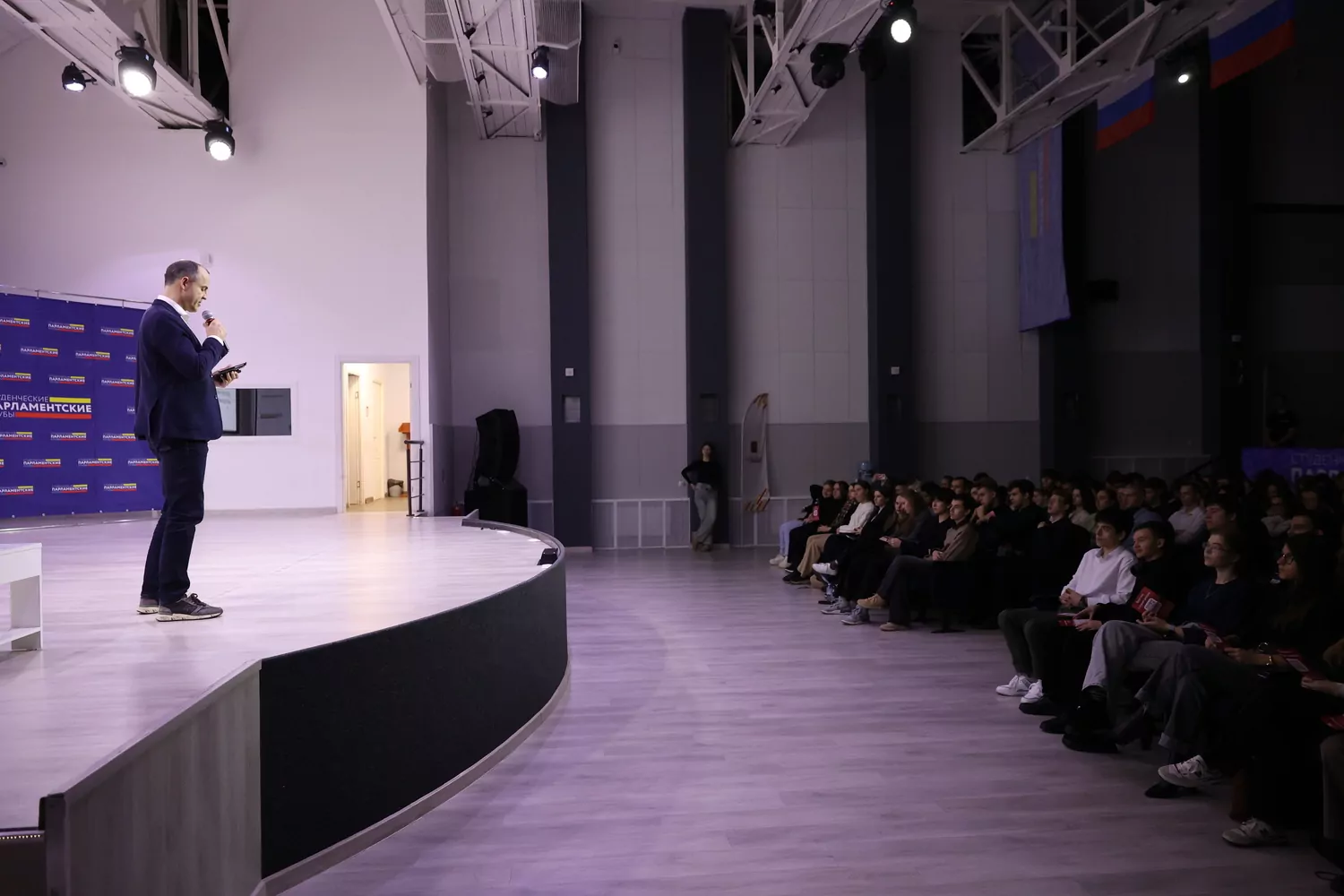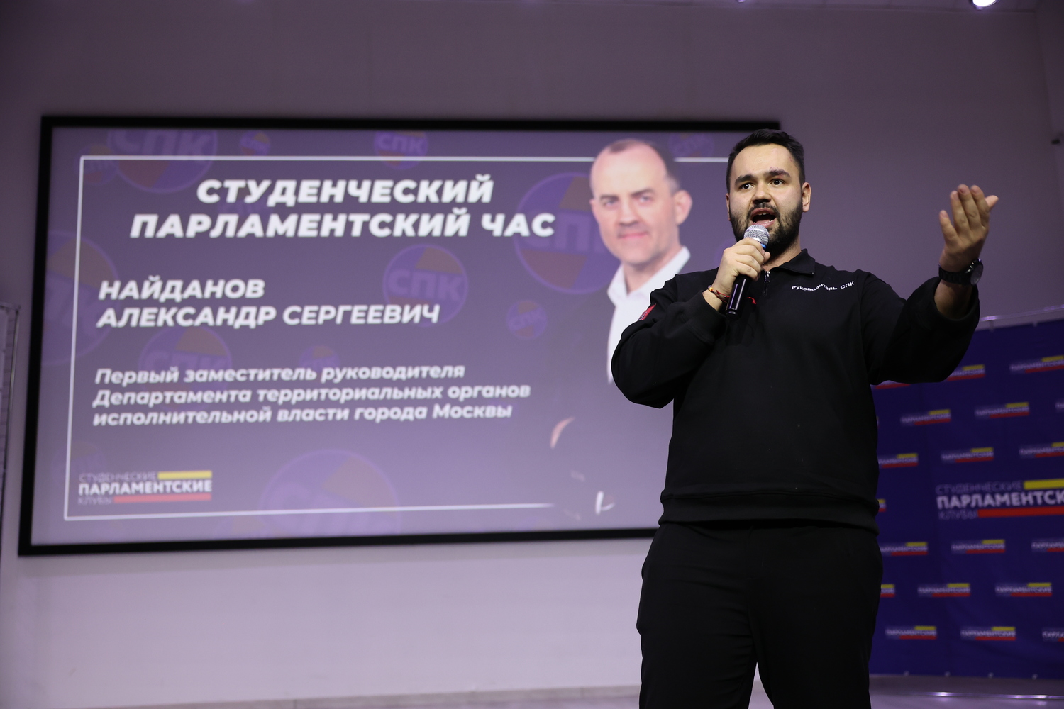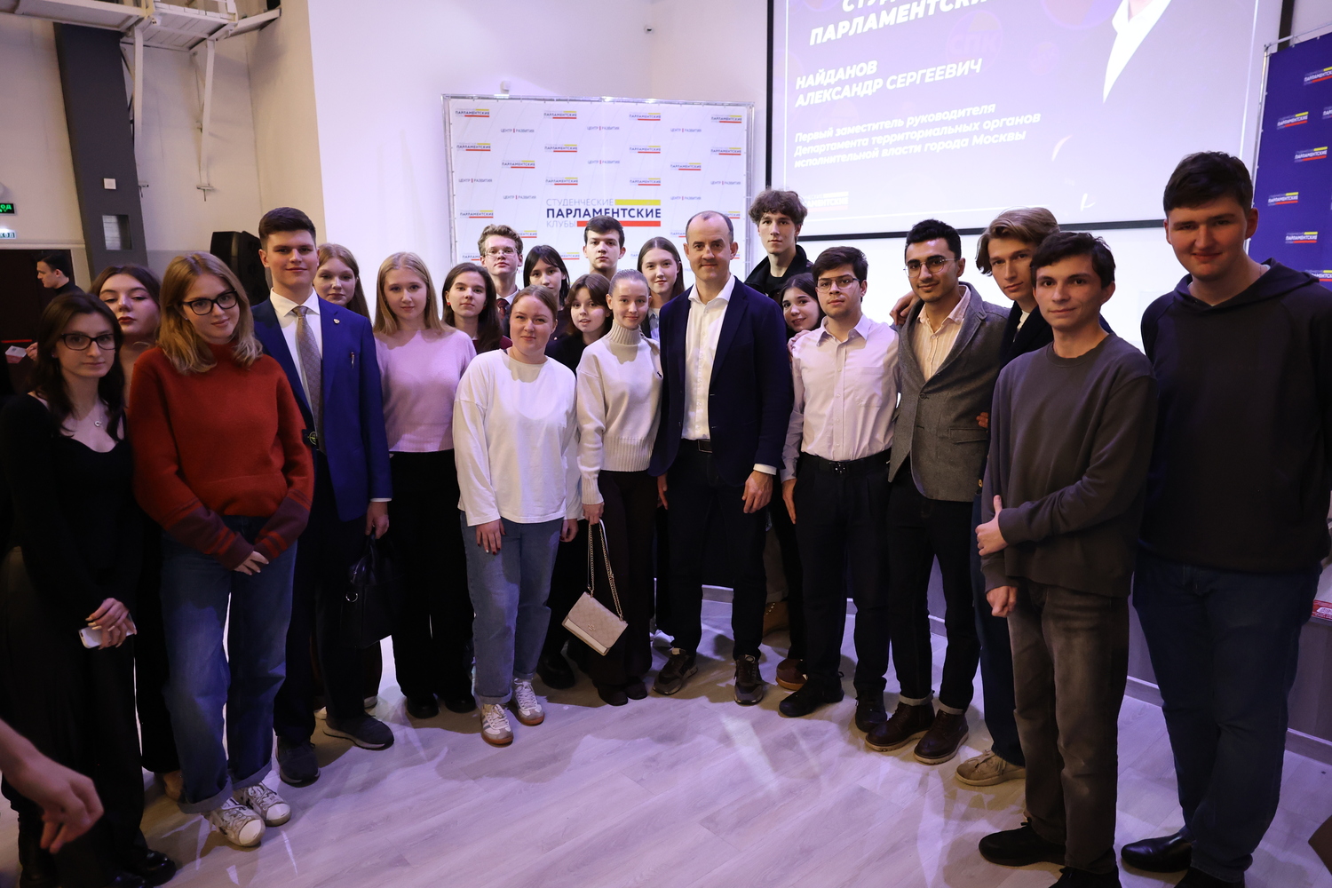 В Центре развития прошла встреча активистов Студенческих парламентских клубов с первым заместителем руководителя Департамента территориальных органов исполнительной власти города Москвы Александром Найдановым.