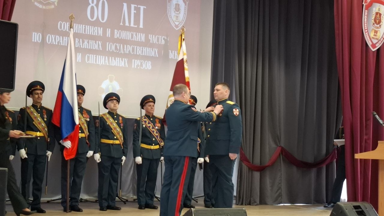После церемонии состоялось награждение военнослужащих. Мероприятие завершилось показательными выступлениями личного состава: военнослужащие продемонстрировали элементы строевой подготовки и приемы рукопашного боя.
