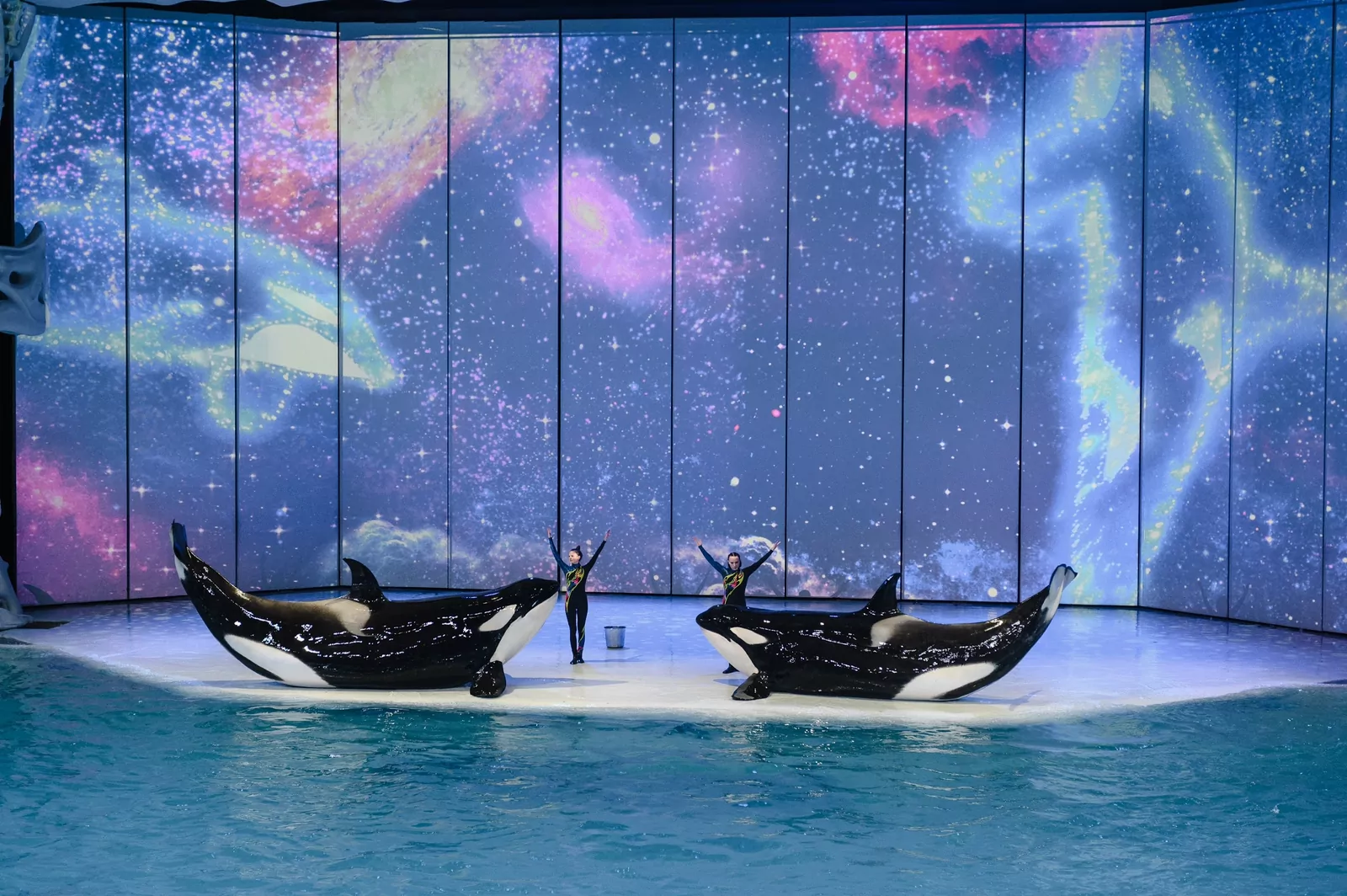 В шоу занято более ста артистов – актеры, музыканты, воздушные гимнасты, акробаты, жонглеры, танцоры и синхронистки. И настоящие звезды – неподражаемые обитатели «Москвариума».