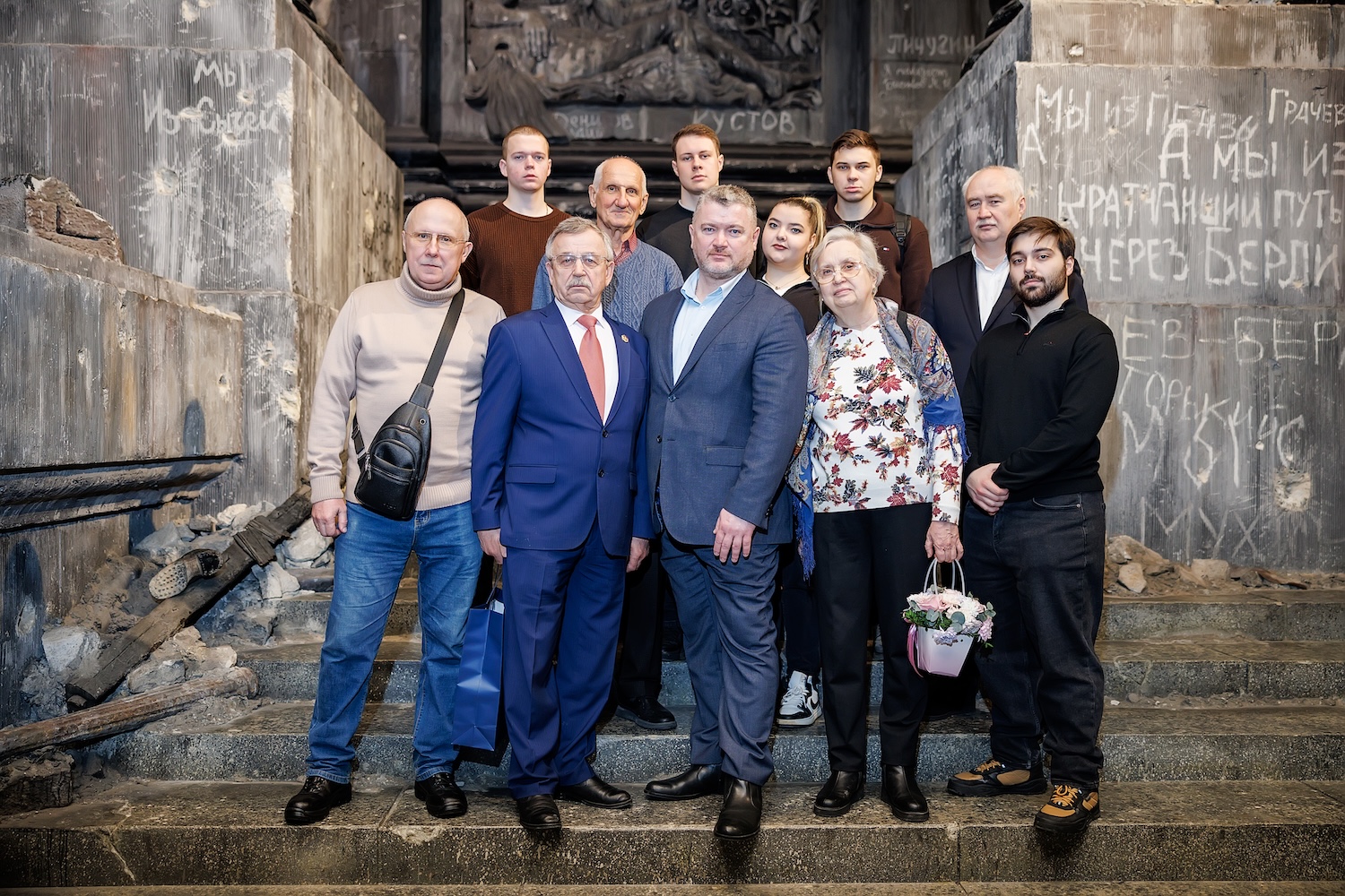 По завершении экскурсии представители старшего поколения и студенты сделали общее фото у стен поверженного Рейхстага.