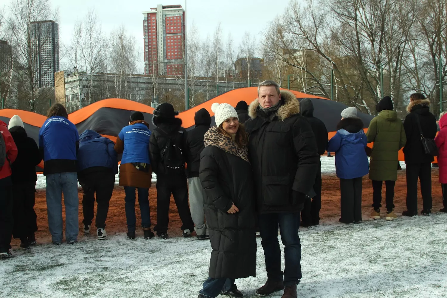 Участники и организаторы патриотической акции в Ростокино поздравили с Днем защитника Отечества парней, выполняющих боевые задачи в зоне специальной военной операции.