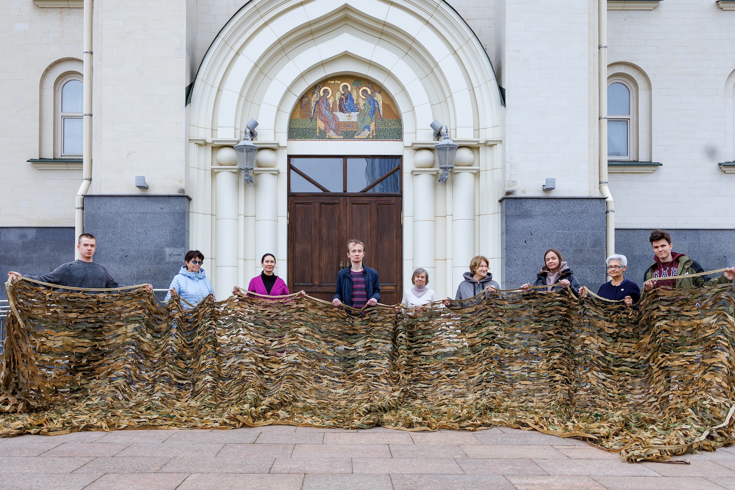 Сейчас волонтеры работают на базе, предоставленной храмом Андрея Рублева на ул. Раменки, д. 2. Настоятель храма отец Андрей отметил, что прихожане активно поддерживают инициативу, а сам он несколько раз лично доставлял грузы на линию фронта. Добровольцы создают различные виды маскировочных сетей — от совсем компактных вариантов до крупных — площадью шесть на десять метров. По их оценкам, общее количество сшитых сетей уже достаточно, чтобы покрыть территорию примерно 50 футбольных полей.