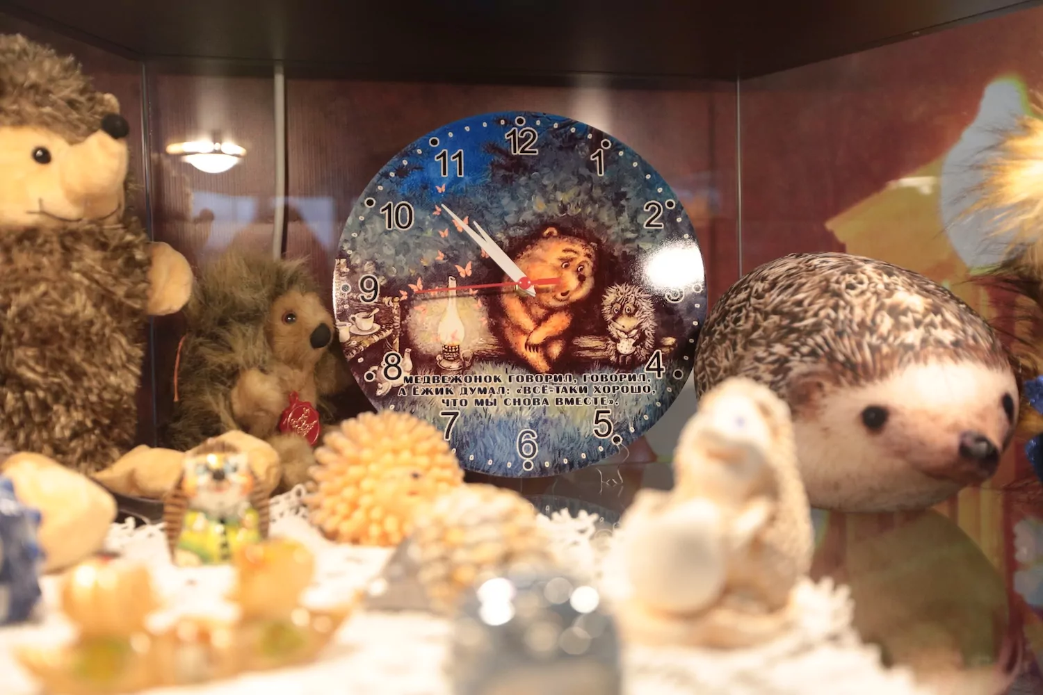 У каждого предмета своя история. Самого первого ежика ручной работы Елена купила в Геленджике в 2014 году. После этого стала интересоваться данной темой, и все вокруг — родные, друзья, читатели — стали дарить ей ежиков и все, что с ними связано. Резиновую игрушку-пищалку еще советских времен нашел сын Елены, когда помогал другу разбирать квартиру родственников для ремонта. Игрушка была в упаковке и даже с биркой и датой — 1979 год.