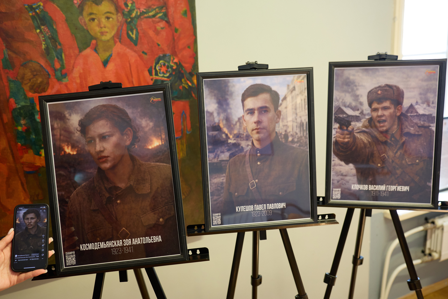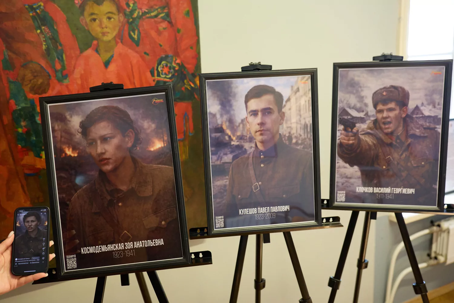 На выставке представили сведения о военных, удостоенных звания Героя Советского Союза. В их числе — шесть участников Битвы за Москву. Как рассказали организаторы, проект сочетает историческую документалистику и новые технологии. Главная цель — на примере судеб реальных героев показать, что Победа в Великой Отечественной войне стала возможной благодаря единству народов СССР. По QR-кодам посетители увидят архивные кадры и узнают историю защитников Отечества.