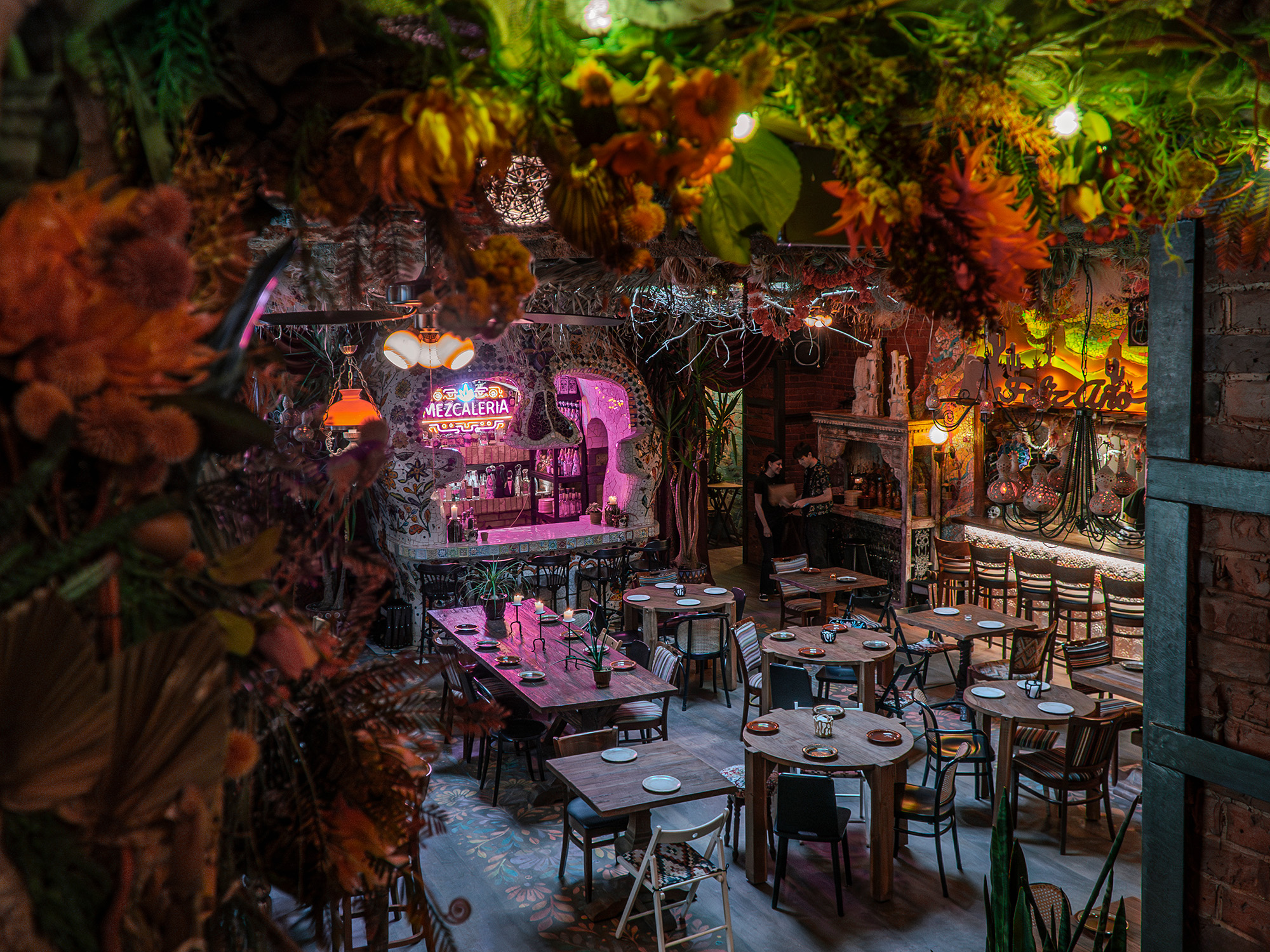 Чтобы с головой погрузиться в культуру и мифологию Мексики, достаточно переступить порог заведения с убаюкивающим названием Arrurru. Витиеватые узоры и мозаика на стенах, плетеные светильники, тропические растения в деревянных кадках, керамическая посуда, алтарь, свечи и те самые раскрашенные черепа Калаверы — все это настолько захватывает внимание, что сложно переключиться на меню. Оно, кстати, небольшое, но разнообразное. Знакомство с кухней предлагаем начать с кесадильи, чили кон карне и черной трески с хрустящими овощами, а на десерт — попробовать чуррос с шоколадным соусом.