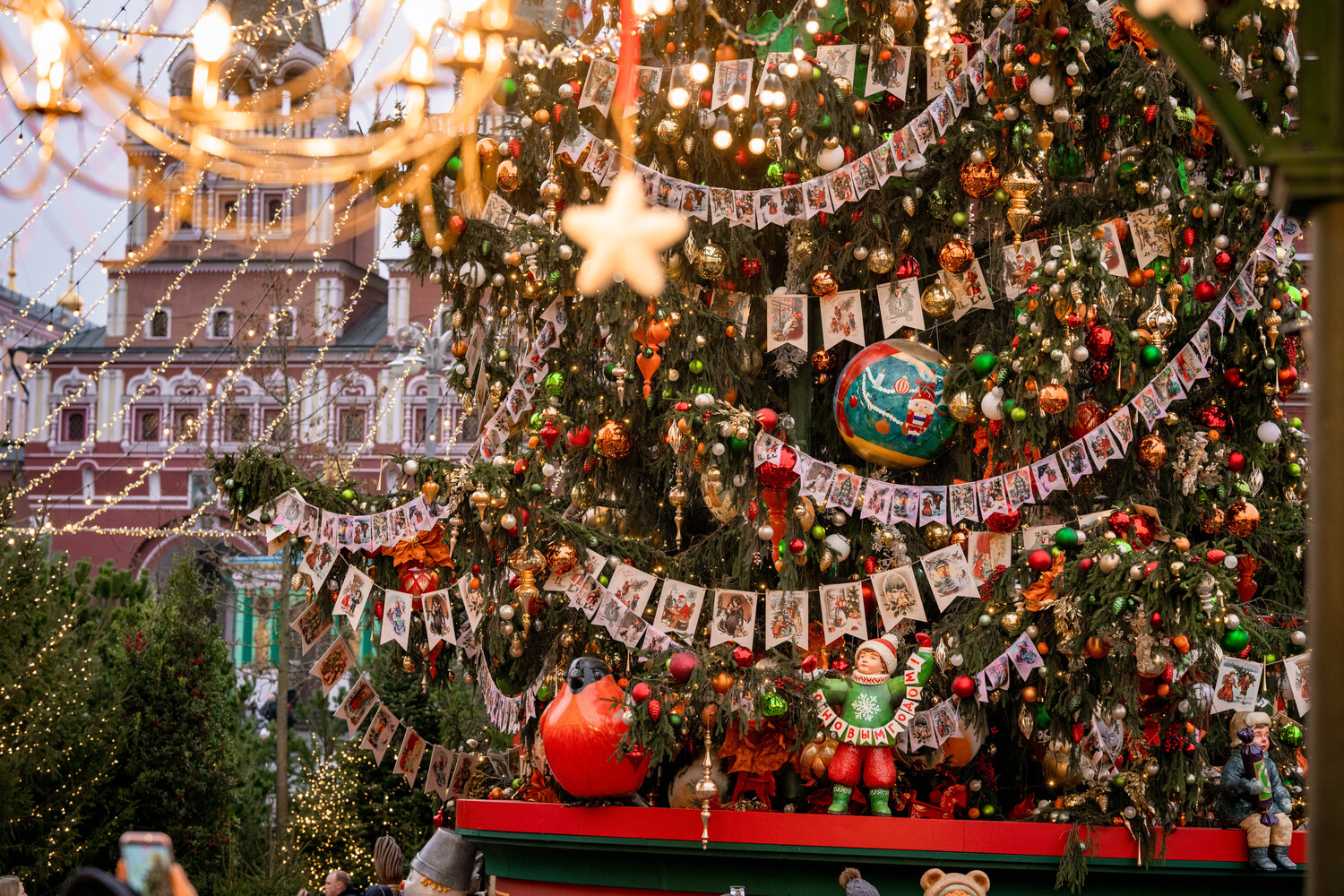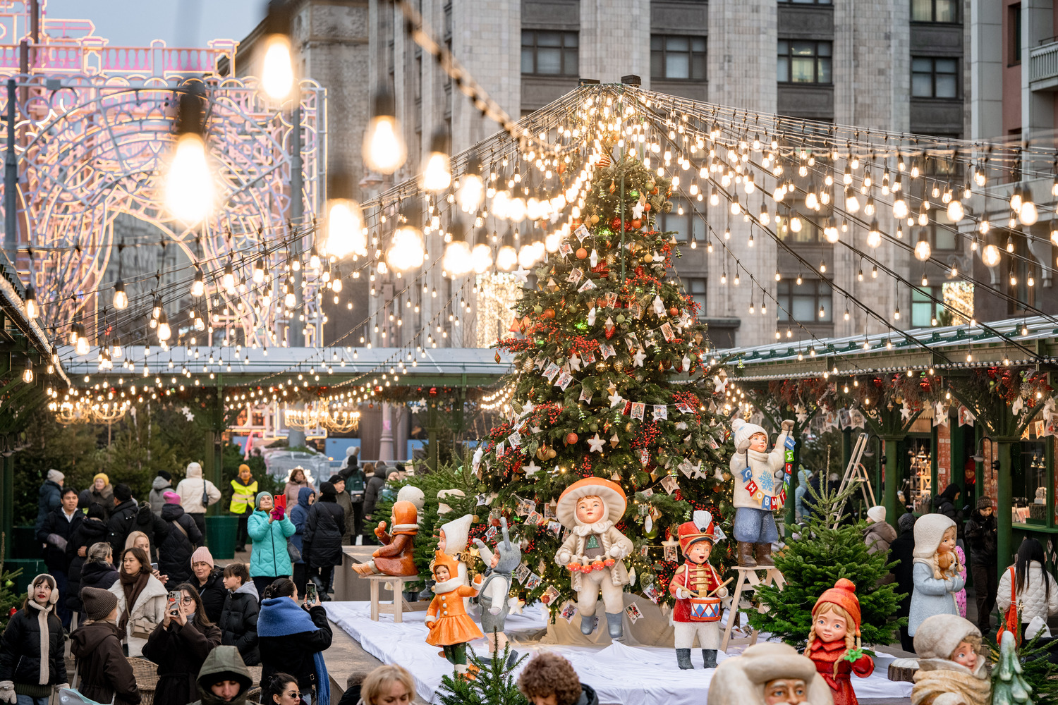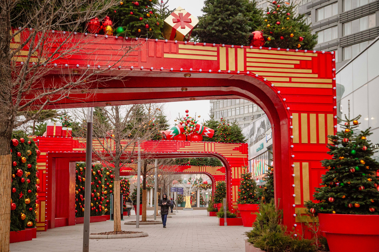 Манежная площадь превратилась в «город елочных игрушек» в гамме красных и зеленых тонов. При перемещении от Манежной площади к площади Революции посетители погружаются в атмосферу московской ярмарки конца XIX – начала XX века. Новый Арбат также претерпел значительные изменения: на четной стороне летние конструкции с колоннами украшены яркими зелеными и красными элементами с бархатными бантами, что превратило улицу в «улицу подарков». На нечетной стороне организована рождественская галерея с преобразованной конструкцией летнего сезона.